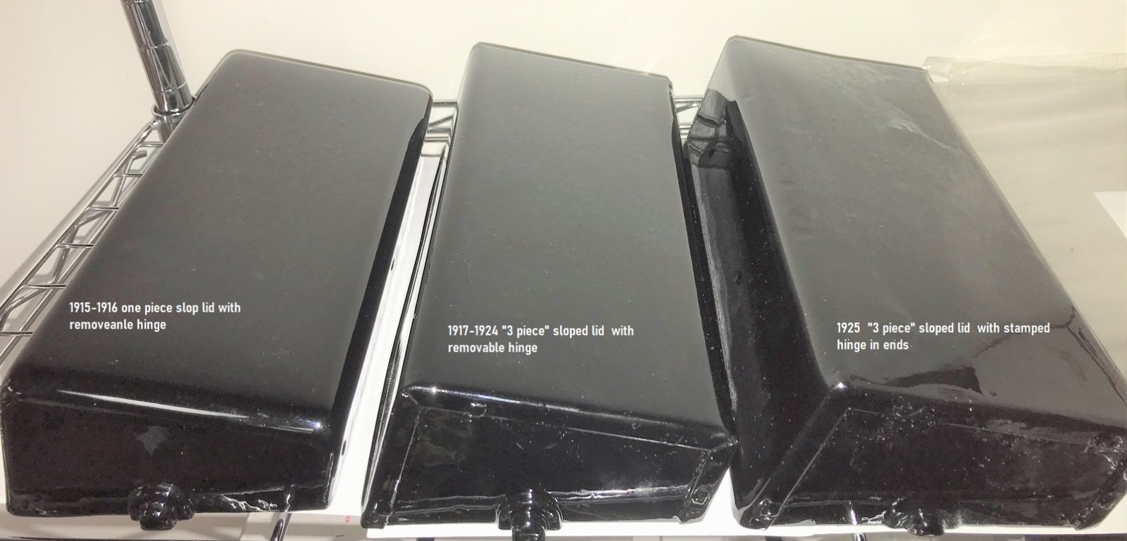 Middle: 1917-1924 "3 piece" lid with removable hinge