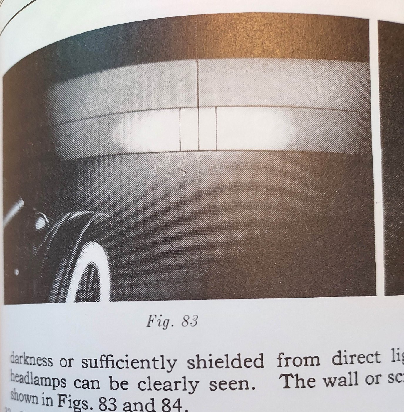 I had removed my bar mounted 26-27 headlights some time ago to repaint the buckets and never got around to properly focusing and aiming them. Marked up the garage door and driveway with chalk for the aiming points as shown in the Ford Service Bulletins and went out after dark last night to see where it has been all this time. Surprisingly the aim for one bucket was right on, and the other one was very close, but the focus was way off. Wow what a difference focusing does. A non focused beam lights up the area like a bare bulb, focusing brings the light to a round pattern then flattens it to a narrow rectangular beam. Turning the adjusting screw in and out can actually fine tune it to a 30 inch high rectangle about 4-5 ft wide. Tonight I will make a slight adjustment to the aim for one and will be back to Ford specs. No wounder I couldn't get the road to light up, and brighter bulbs were not helping. I was running 50-32 cp at one time and still couldn't see, swapping back to 32-6 cp bulbs properly focused did it. The 6 cp DIM setting will allow me to run with lights all day as driving lights without a battery discharge. I may have to try 24-4 cp bulbs for my next experiment.
