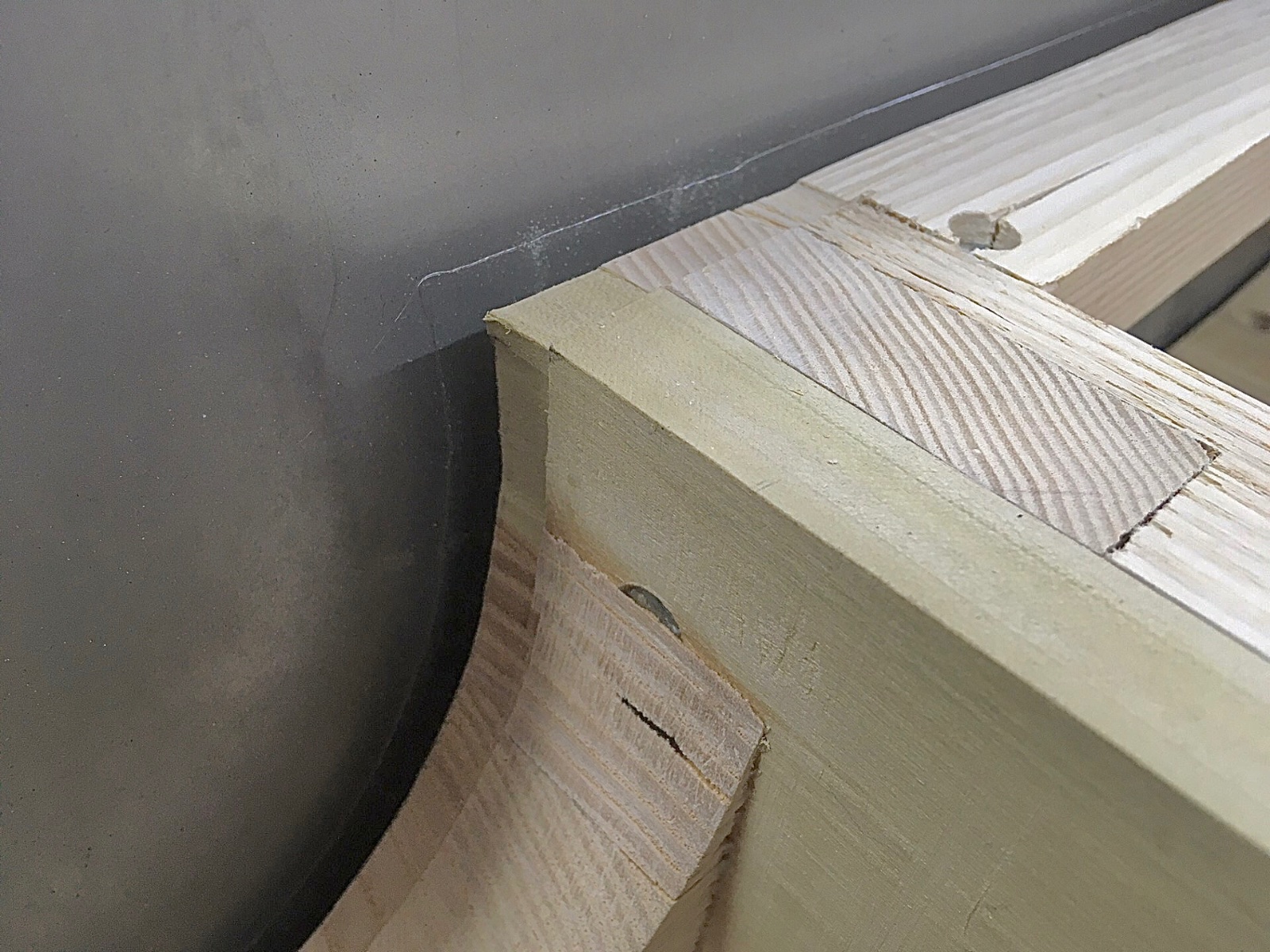 I had to bend aluminium moldings for my 1912 van and my 1925 wide body roadster, and used a wooden former like yours for each, but with a slight difference in technique. I cut the formers to the OUTSIDE diameter of the curve needed. Then I used my table saw to cut a grove around the curve. The cut was set to the depth of the molding width. I had to do two cuts side by side to get the groove as wide as the molding was thick.