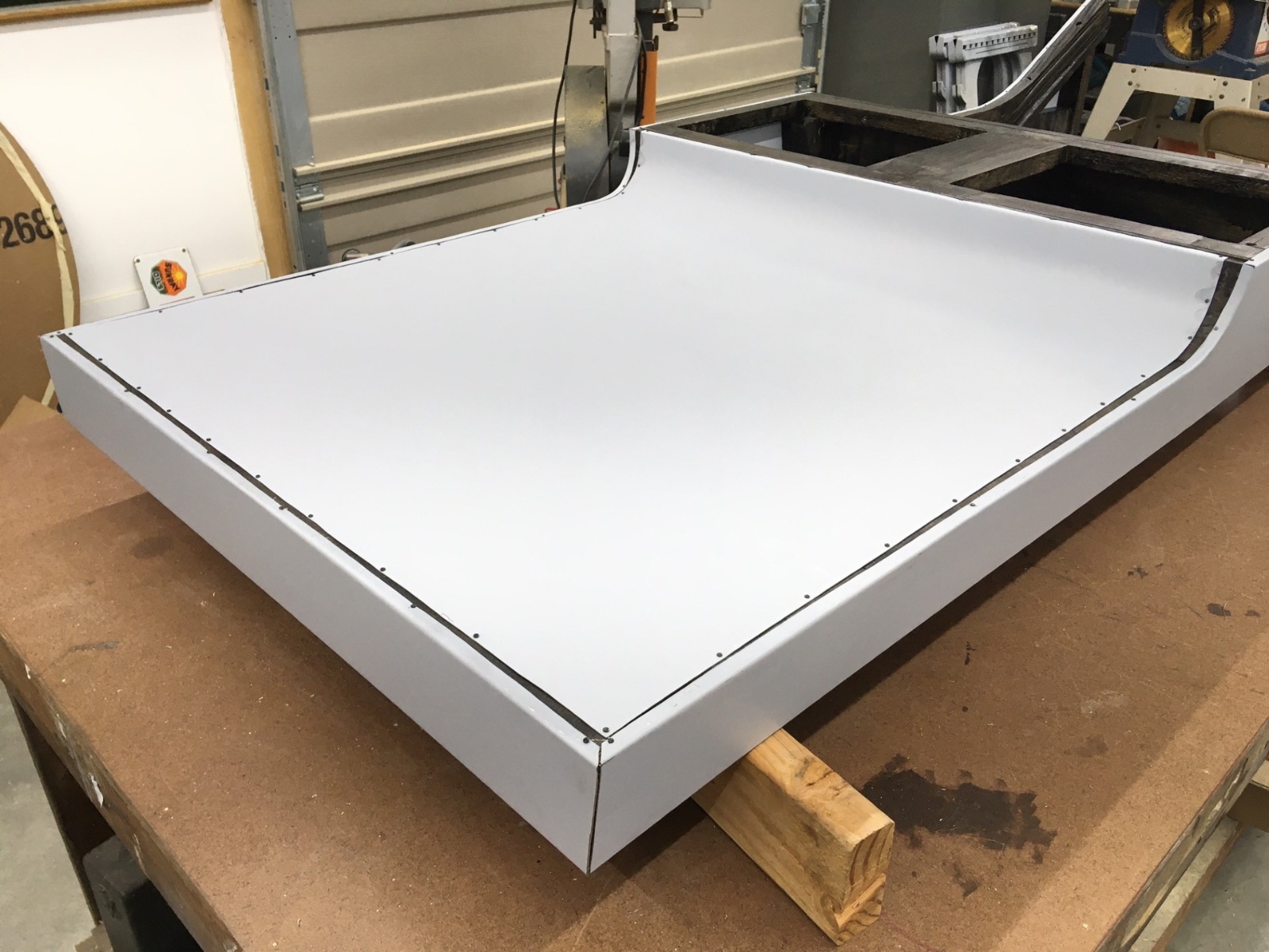 So time to skin the body. I start by routing the edges where I want the sheet metal level with the wood.