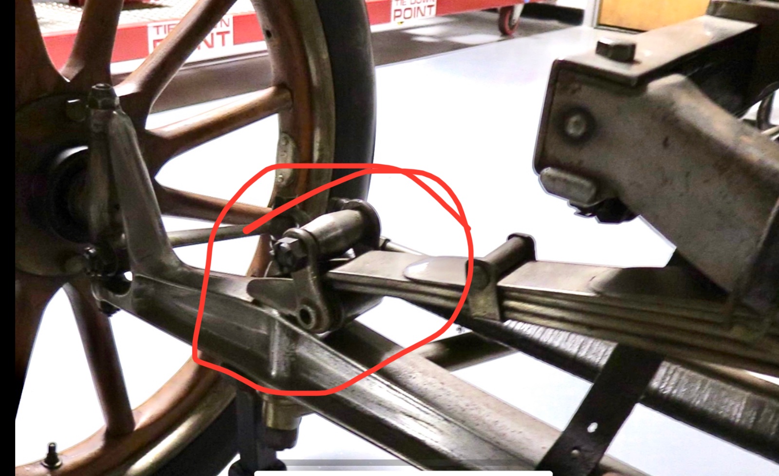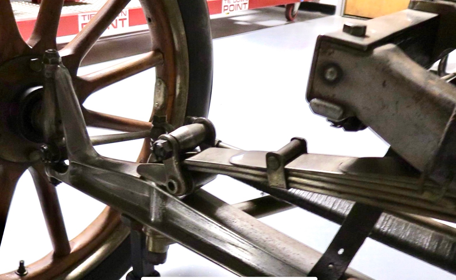 This addition is on the Ford Special racer at THF. It’s only on the right spring, and appears to limit possibly the upward flex of the spring? Anyone familiar with anything similar on other T’s? My guess is this is to help hold curves on tracks, since it’s on the right side only. This is the 410 c.i. racer that beat the Blitzen Benz in a one mile match race at Detroit (fairgrounds 1 mile dirt track) in 1911: