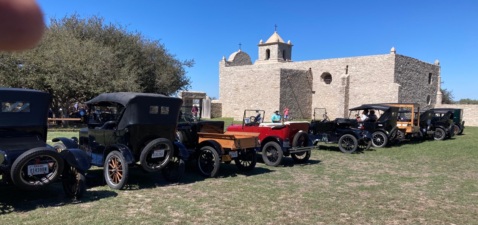 …headquartered in Rockport Texas. Lotsa good seafood and no need for a Ruckstell or under drive tranny. This year’s Model T tourists brought 70 cars to tour to Goliad TX to visit the 1729 Spanish Mission La Bahia…. maybe others can add pictures