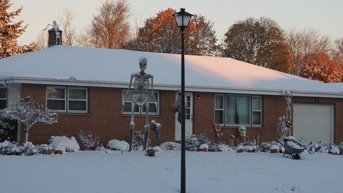 With the 2.5" of snow we got yesterday, it looks more like Christmas than Halloween.