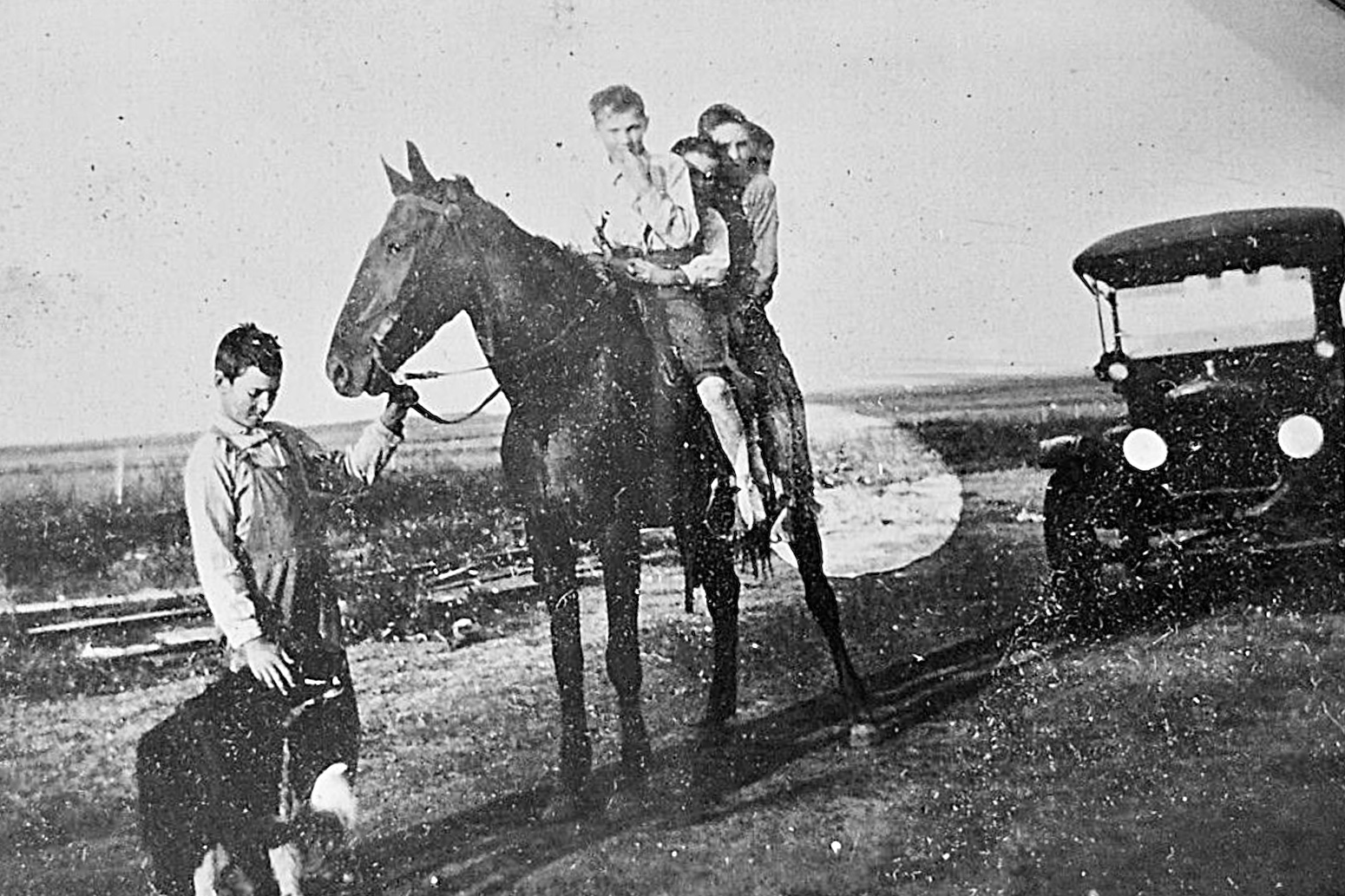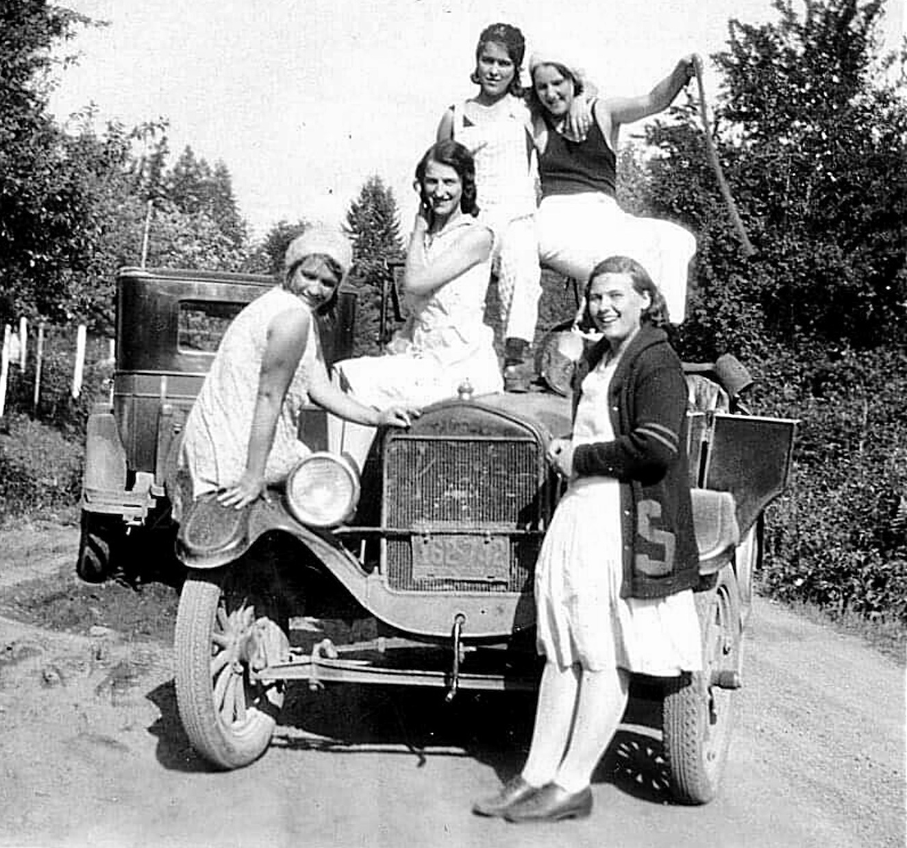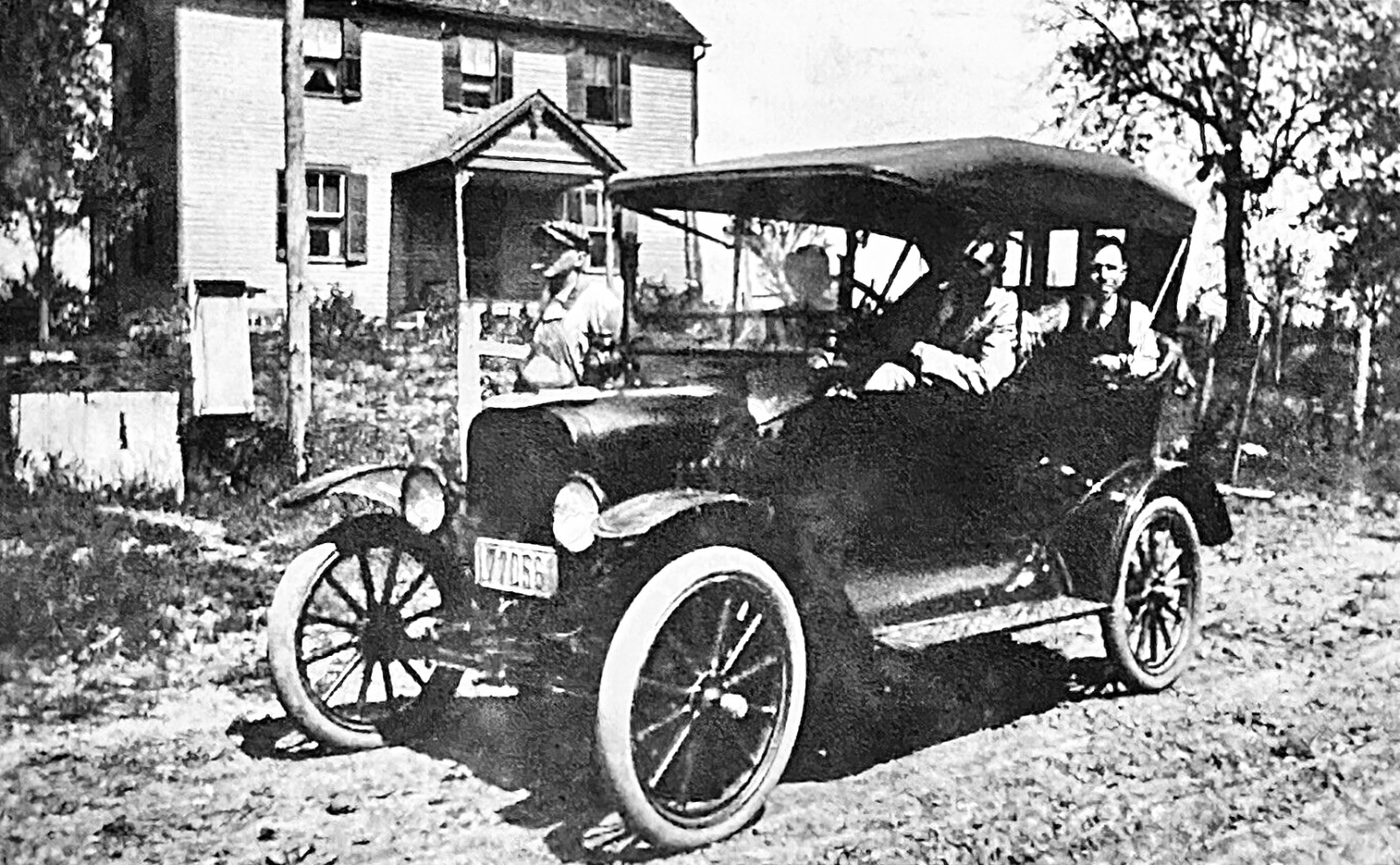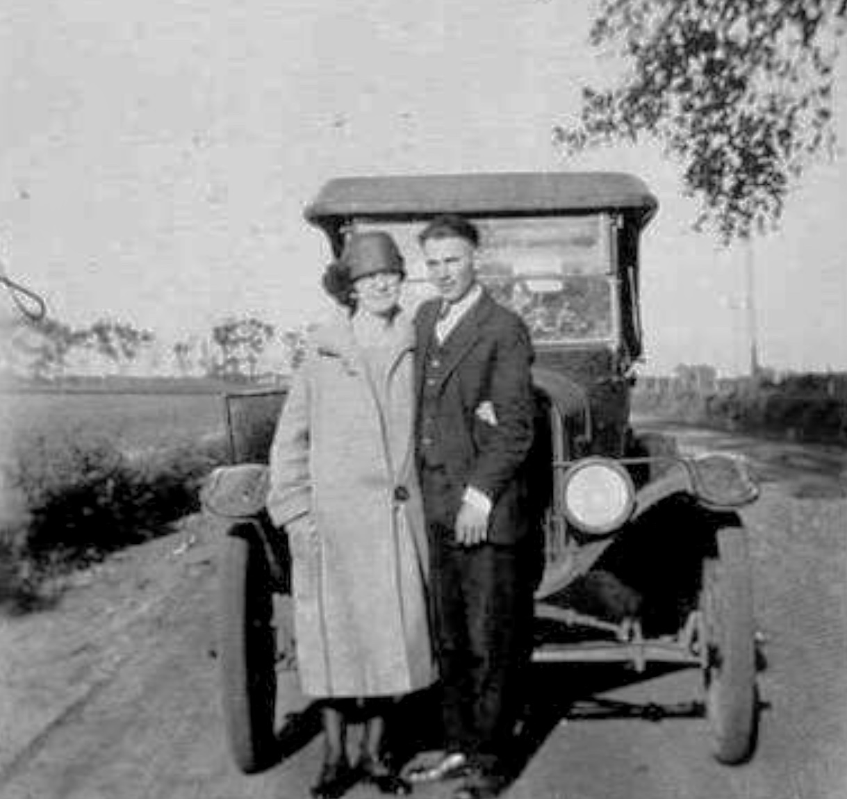 One other T (I think also a 1924/'25 roadster?) also has a simple fender brace, but not much of it can be seen as the two people are standing in front of it.