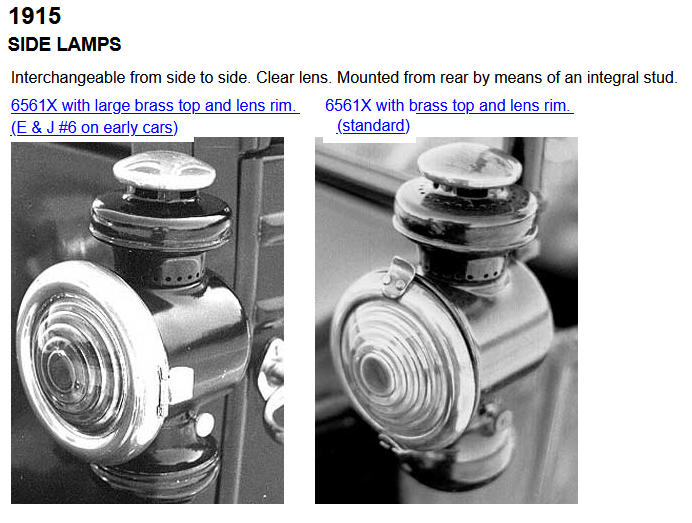 The windshield lamps are the same except the cap says E&J 8, and the lens is of course clear with no side glass.