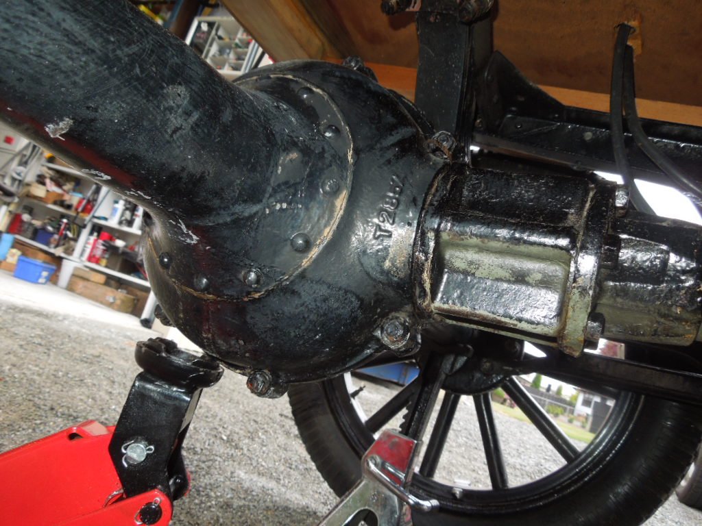 What obviously is not right on that rear end is the radius arms/rods. The back end of them are the "long cut" style used only the last two years of production, basically 1926/'27 only. Those are a bit over an inch shorter than the 1910 through 1925 radius arms, and generally cannot be used on earlier rear ends without some sort of finagling. But the other end doesn't show in any of the photos I can see.
