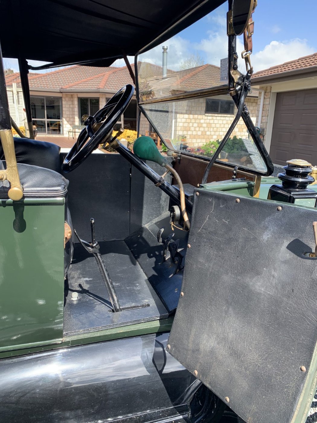 The coilbox with the slanting lid is later than 1916. The upholstery is way too full. The buttons resemble the original trim, but the stuffing makes it look much more padded than original. It will compromise front seat room.