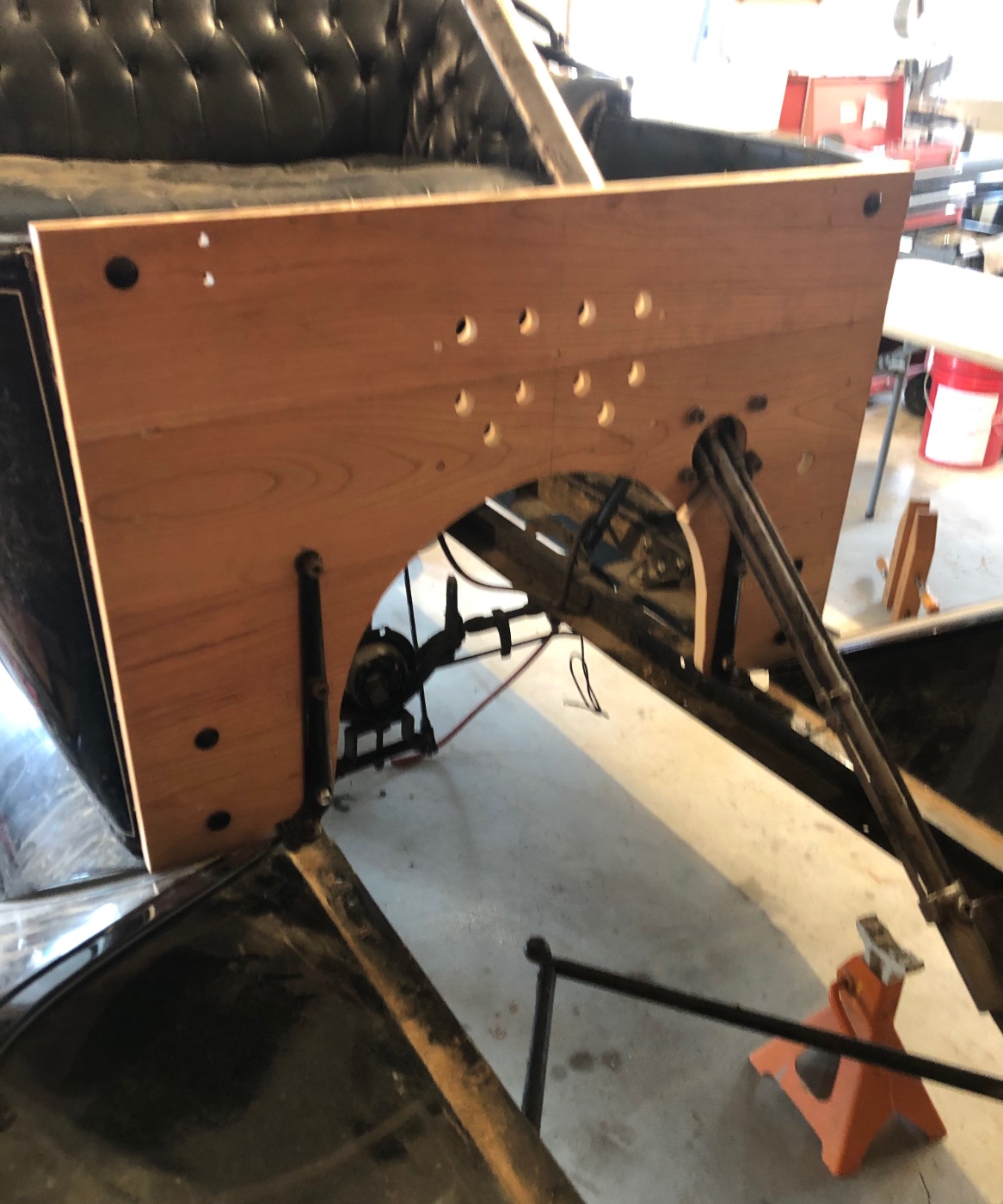 Interesting to note the differences between specific production years. I will certainly want to be sure of pattern accuracy before cutting the panel blank. Right now, I believe what I've found to be correct dimensions for the panel makeup - the core is laminated in vertical strips 5/8" thick, with cherry cross plies front and back of 1/16" thickness, yielding a completed panel 3/4" thick.