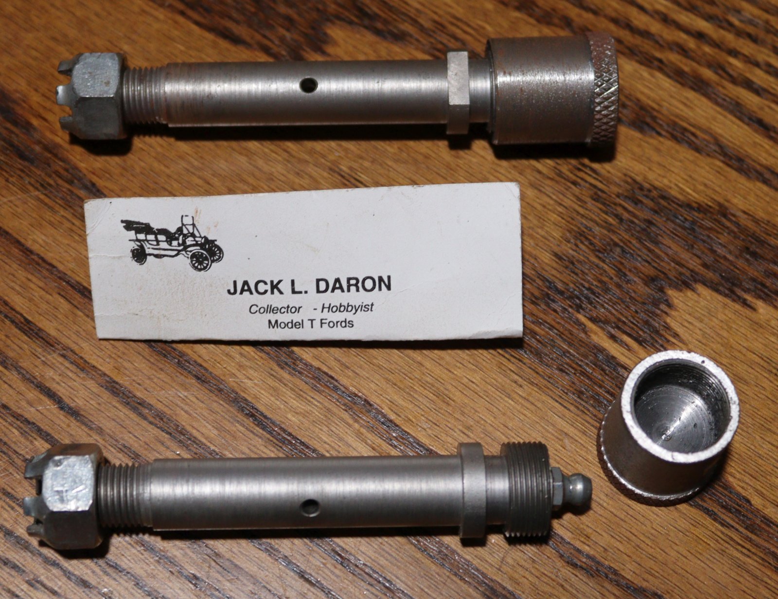 Ok so I received the bolts from Jay this afternoon. Thank you Jay. Upon looking over the bolts. The ends are of rough saw cuts and have no appearance of being heat treated and appears to be machined raw stock. I will do a Rockwell test Monday when I get into work and talk to one of engineers and try to figure out what material these are unless anyone knows what they are made of. I need to make a longer version for the double hassler. I may make a set for the single as well.