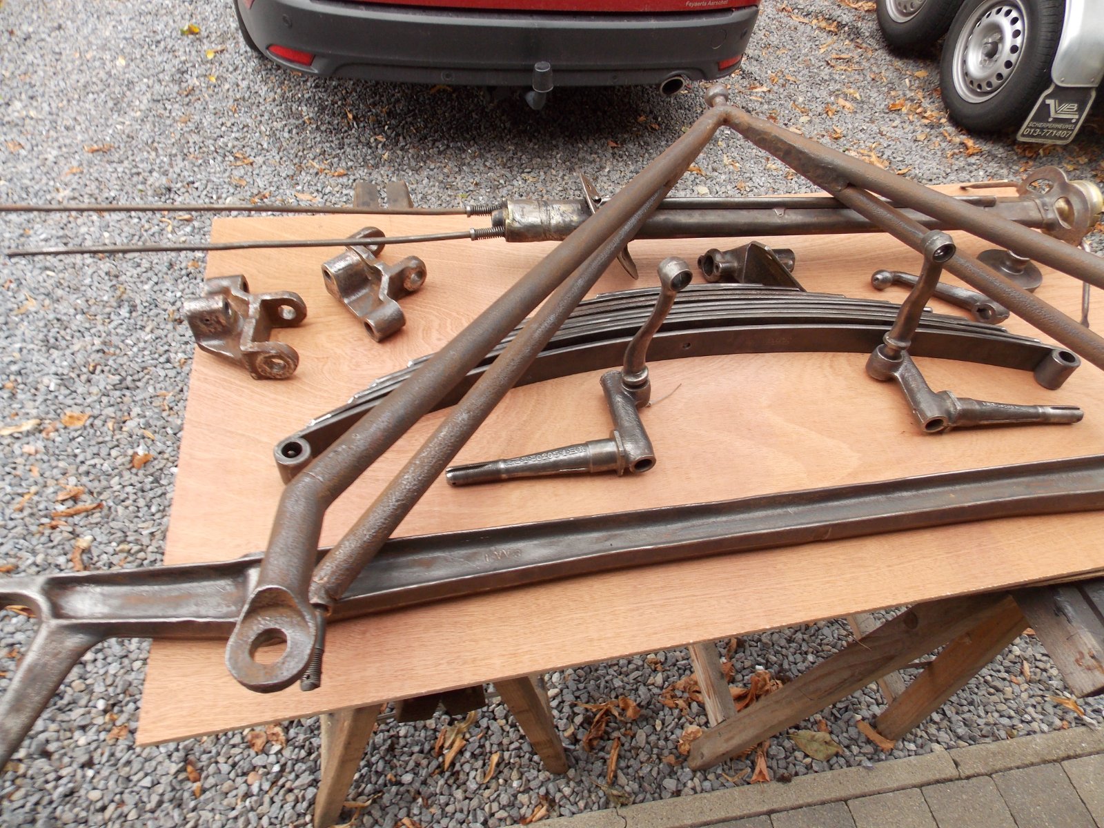 The rusty front spring mod shown allows a longer spring, which would improve ride. Hardware would have to be high quality and kept tight. Forged steel parts are very strong, and they could be hand-filed to give a good tight fit on the axle.