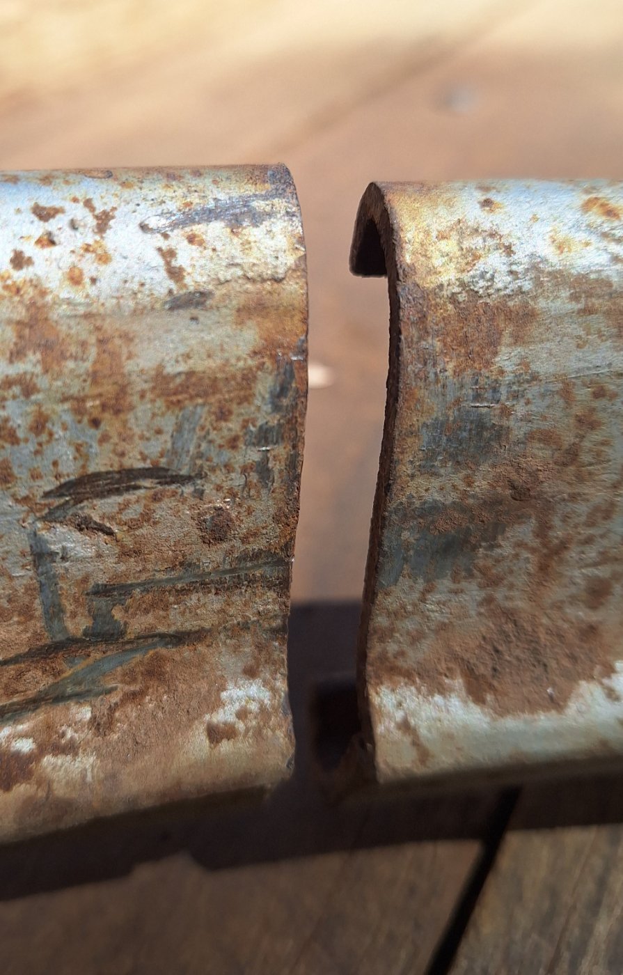 I've been working on the barn fresh tourer from Booboorowie. It was fitted with 4.40 x 23" tyres three of which were straight sided. To get them on the rims they cut the rims!!!! The cuts were made at one of the loose lug mounting slots, so the joint was somewhat supported. There was no joining fixture whatever. The pity is they are three of the best clincher rims I have ever handled.