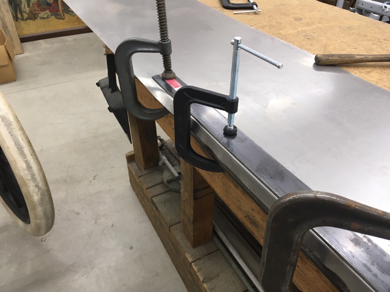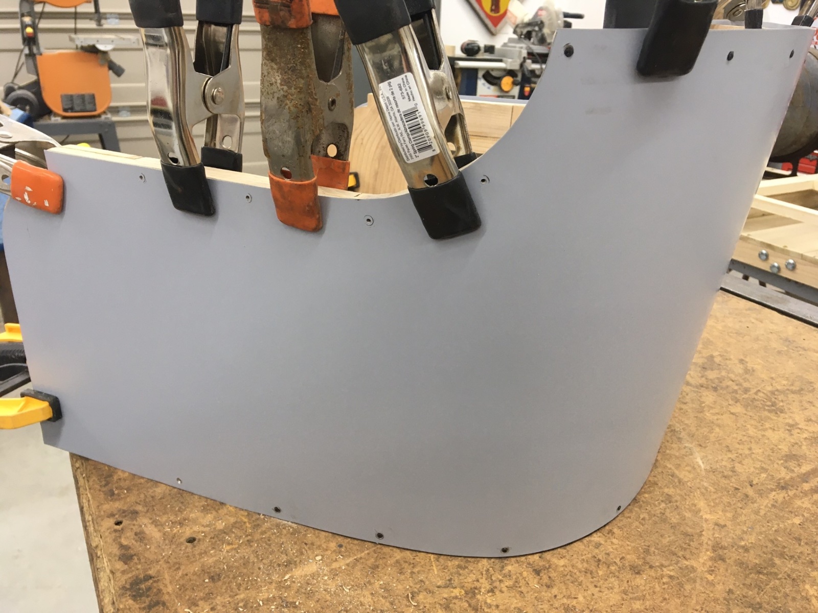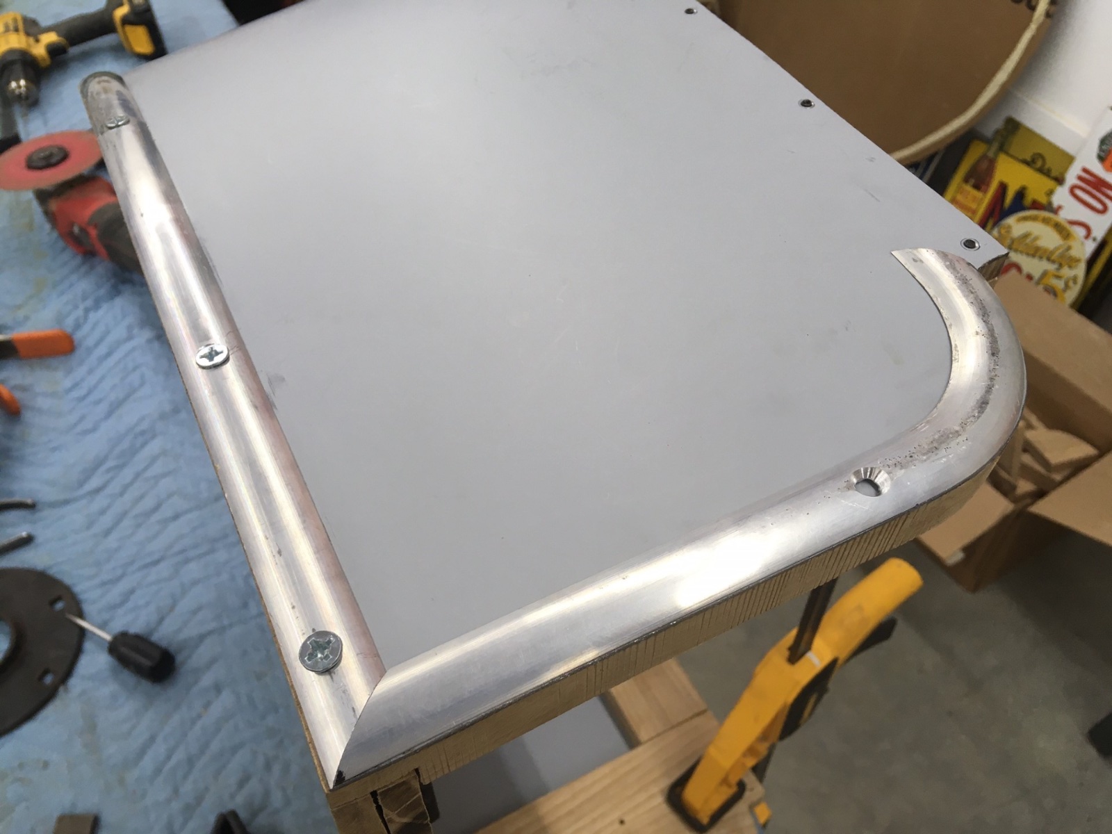 Ok, well I got the corner plates finally. Clamp them in place and knock the material up.