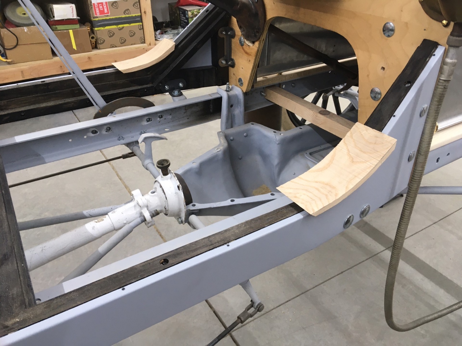 That long hood would go wonderfully with something like Rob’s original 300 CID Ford Special engine, to bad there is only one of those that survived. Wayne’s idea of a 6 cylinder T is good but a lot of work. The long hood just screams Model T Speedster and who better to build one with a long hood than Rootlieb . Are you moving the T motor back the 5 inches with an extra cross member or extending the peddles the 5 inches ?