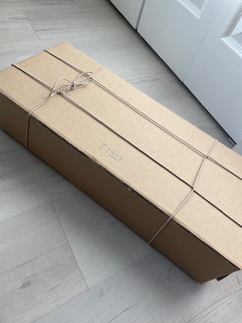 OK, so the 'toolbox' was made of corrugated material, the filling was sisal and the tie string probably of cheap hemp twine. (I guessed at the butcher 4 corner wrap being the most logical and quickest way to tie it up keeping the flaps tight...the string could have been precut and tied in a loop-stretched in place without tying a knot after putting in place).