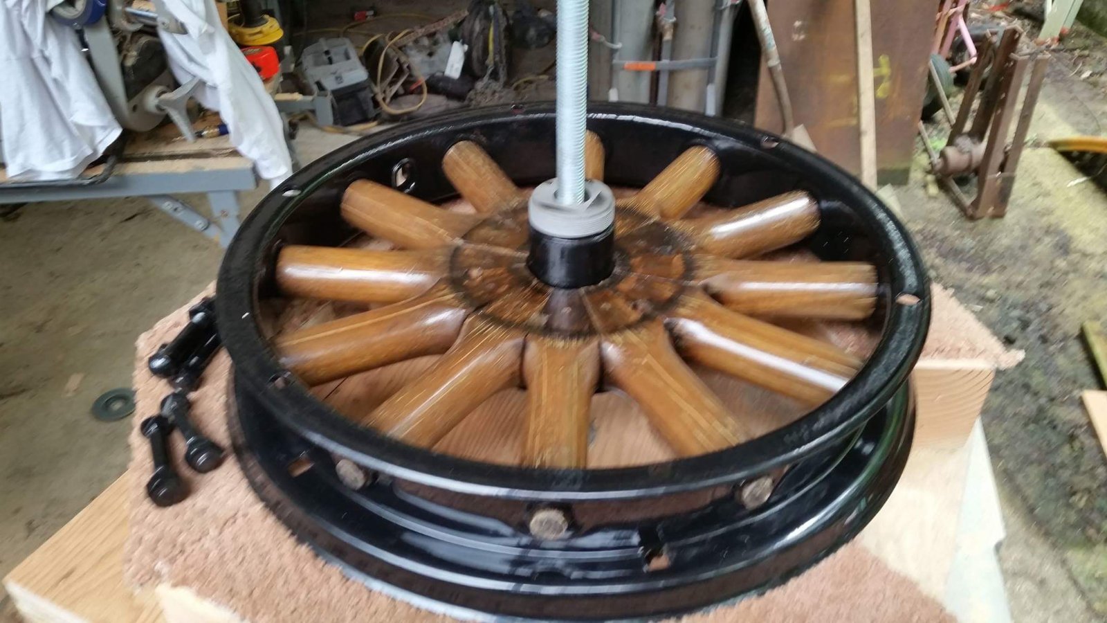 That is a Model A wire wheel. I have a friend in Salinas(sp) that might be able to help you out. Is that relatively close to you?