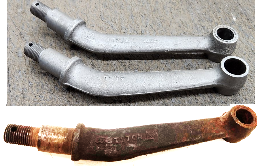 The odd shaped spindle arms, with Ford part numbers, appear to be unused, perhaps a repro intended for a special purpose