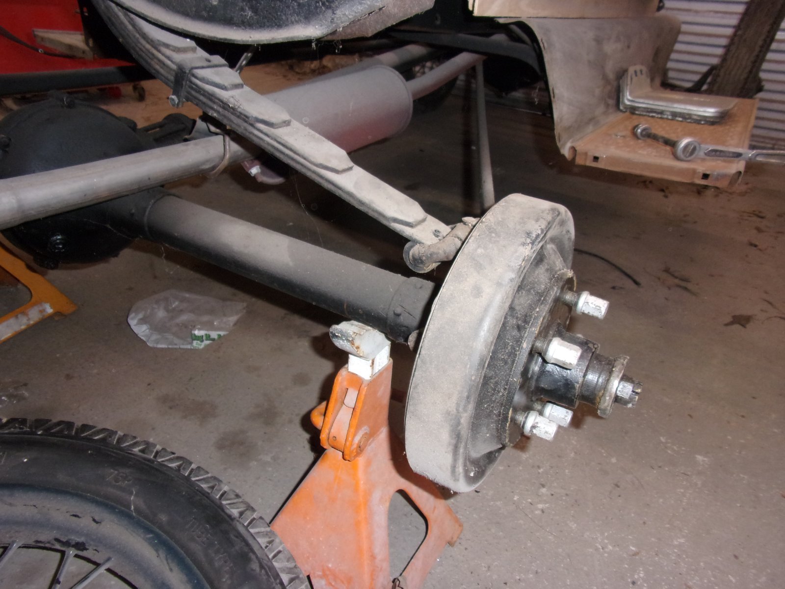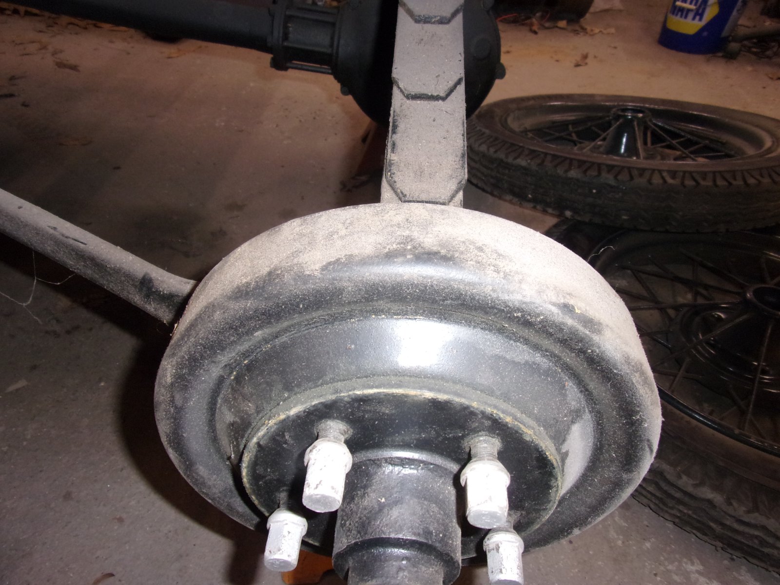 For the rear you can do the same. You will also need to find a set of good large drums for the wood wheels. The wood wheels for the 30x3 1/2 de-mountable rums should be easy to find, however you would do best if you replace all the spokes while you have it apart.