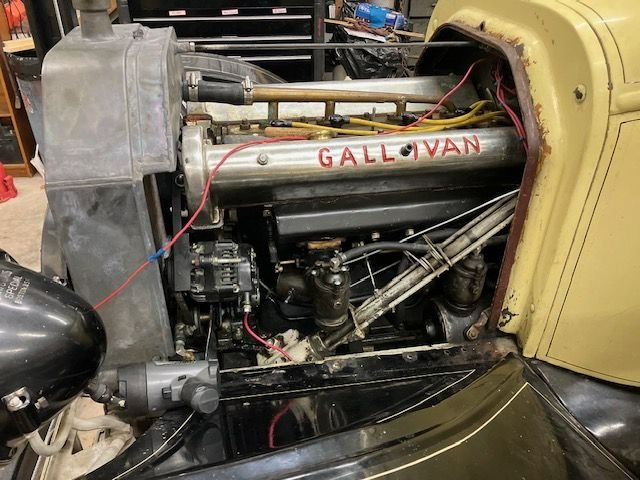 My car was restored from an original 1915 model t roadster with the Gallivan engine was shoehorned in. Due to the aluminum gear case on the front of the engine the frame was extended a few inches, the wood cowl was set back about 2 inches to get enough clearance. The model t transmission is original .