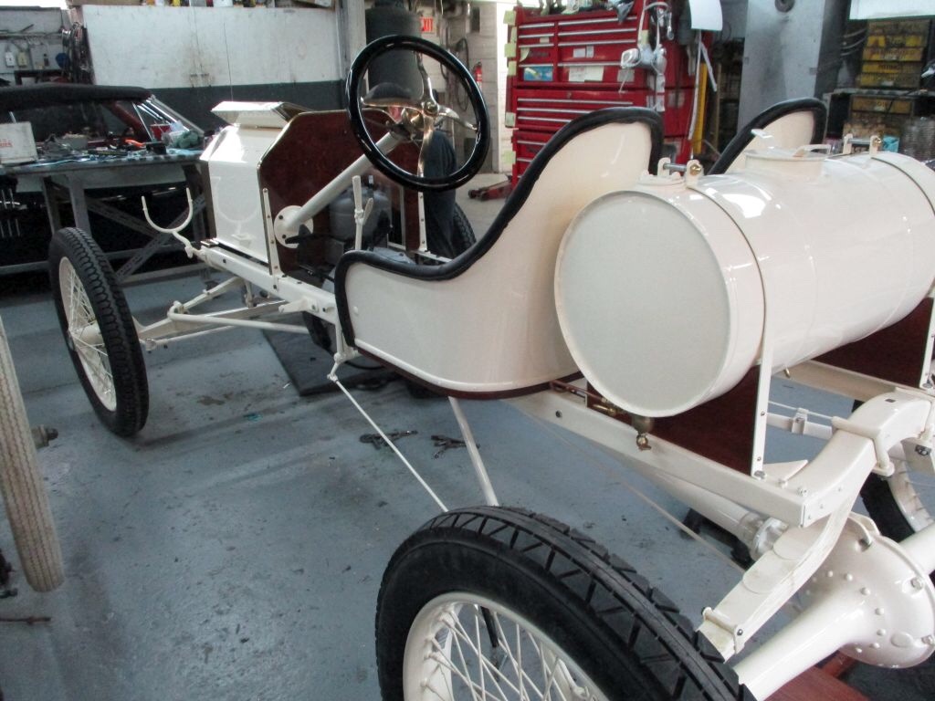 I know that Ford had these cars originally configured to "quick change" the seats and gasoline tanks to favor different kinds of speed contests. Are you having the smaller gasoline tank made and painted ready to use? Or the seats set up to change in or out? As I recall, you already said you were having both wood and wire wheels done for the car.
