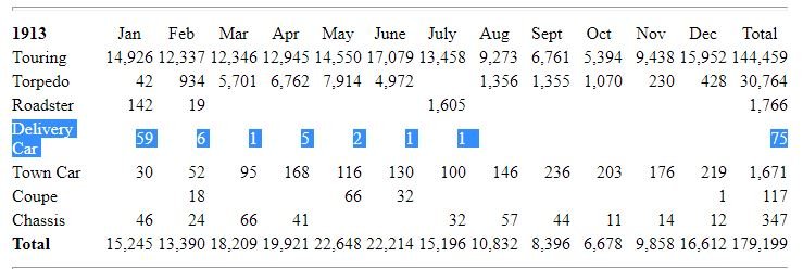 And from page 462 of Bruce's book under Model T Ford Production he has 513 Delivery cars produced in Fiscal Year 1913 (which started on Oct 1, 1912 and ran to Sep 30, 1913.