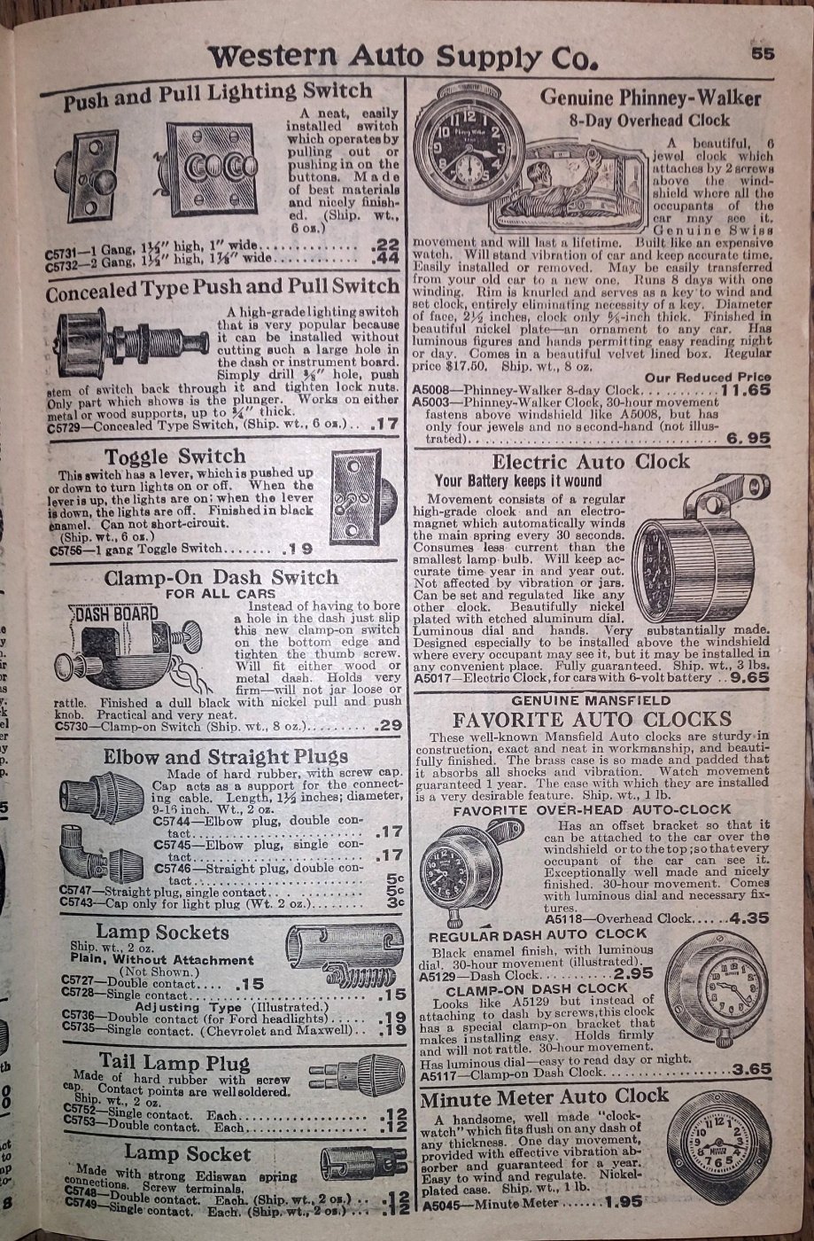 I’d love to thumb through that Western Auto catalog. Just that one page is full of parts I’d order if I could. The push/pull switch in the upper left hand corner looks like the dome light switch on the right rear column of my 1926 Fordor. What is the month and year of that issue?
