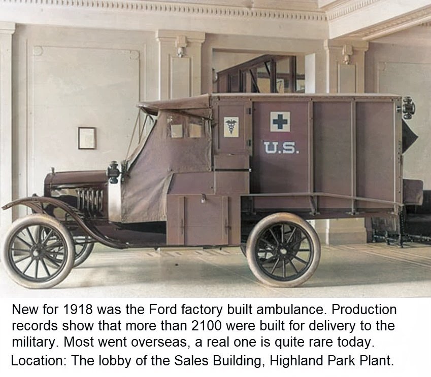 The ambulances of the AFS were painted a light(ish) blue, as that was the standard colour of the French Armee, under which command it operated, there is only one original car left, it resides in France in the AFS museum near Paris. Most of the AFS ambulances were later fitted with Goodyear demountable rims, as Ford did not yet produce demountables then, the Goodyears can be identified by having 5 lugs The Standardised US Army Ford ambulances of the 1917 model were painted a rather light olive drab