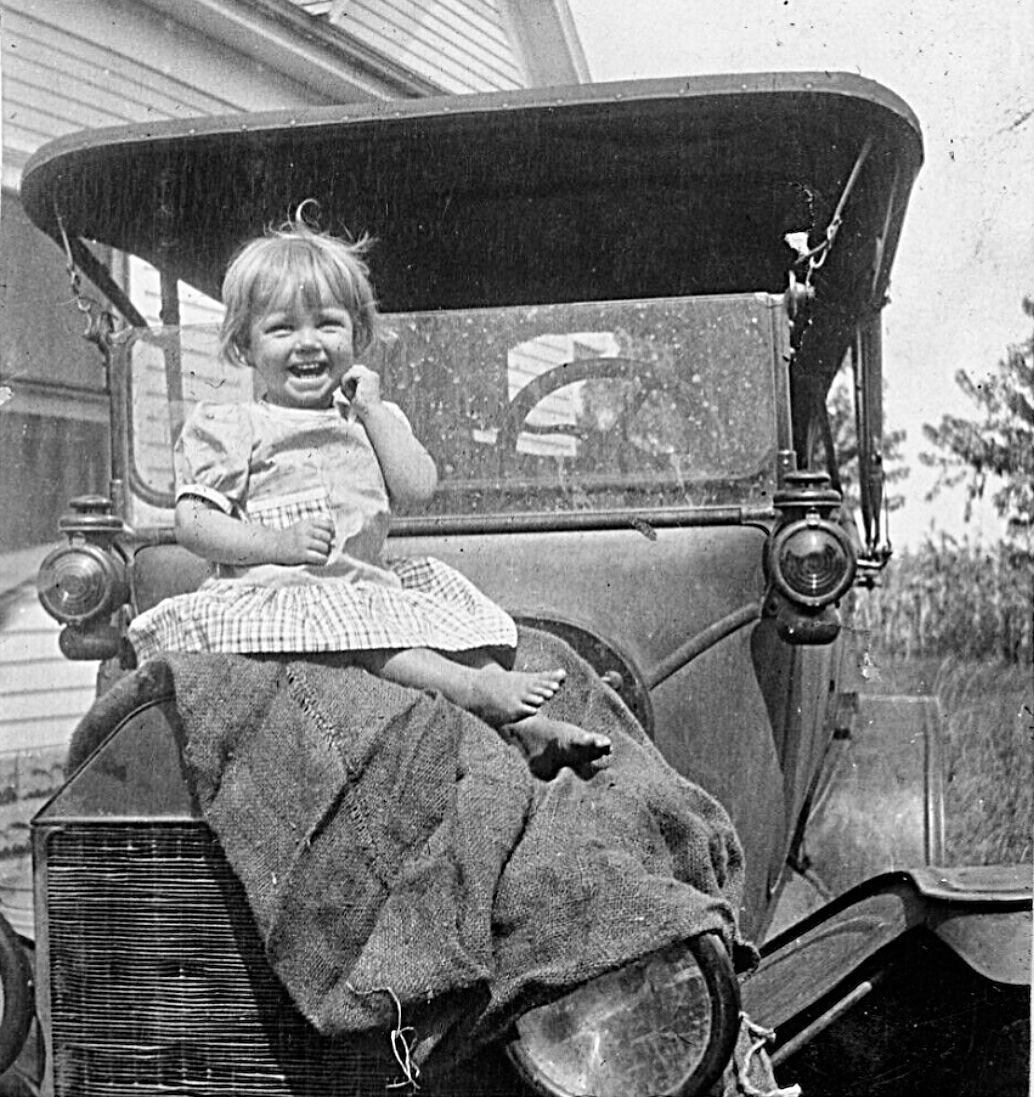 Then the first pic with the cute kid...that poor ol '16 with the now flat paint and pretty well worn radiator. Man people were hard on their cars back then!