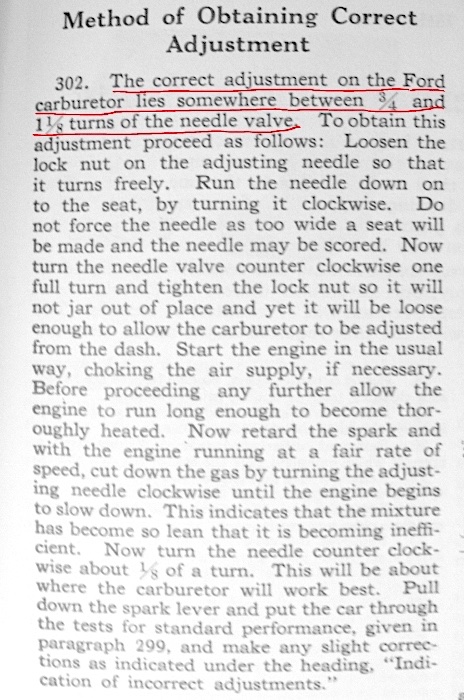 Good info from Dan on the carburetor adjustment! Most every T is in that range of adjustment or pretty close to it but not all are the same. This is an important point to learn when learning about Model T’s. I have 3 T’s and each has a slightly different adjustment but they are somewhere between 1 1/8 to 1 7/8 turn but that’s my cars others may be different.