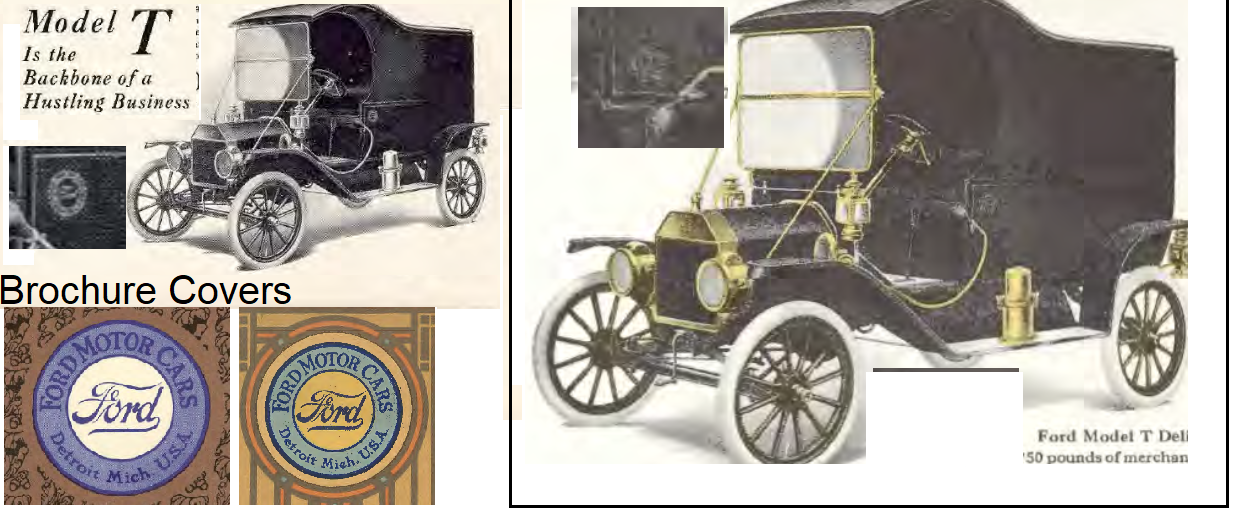 This link to Cimorelli's Digital Model T Library has several pamphlets about the delivery wagon https://www.cimorelli.com/mtdl/1912/default.htm The first set of boxed brochures have smaller images than the others. Doubt if the Brochure covers were the logo --