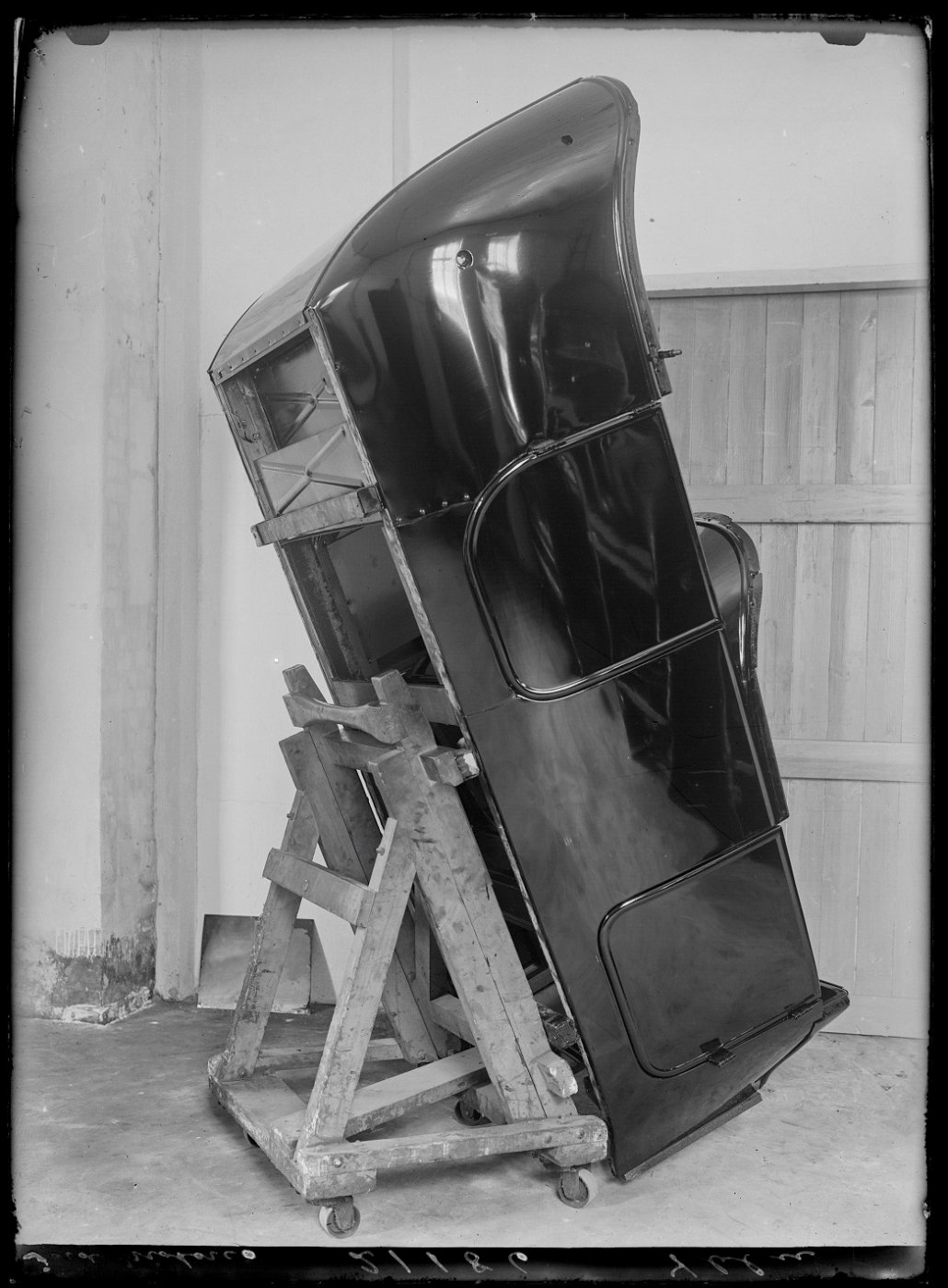 Touring body in a rig on wheels ready to be pushed to the assembly line - february 1923