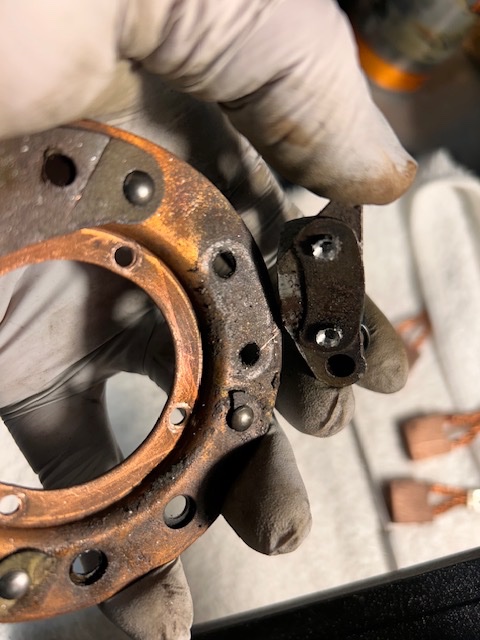 As indicated above many faults occur on the side of the brushplate that is not visible. Suggest removing and completel;y rebuilding the brushplate too. Upon reinstallation use copper rivets and set with a pneumatic rivet setting tool and buck.