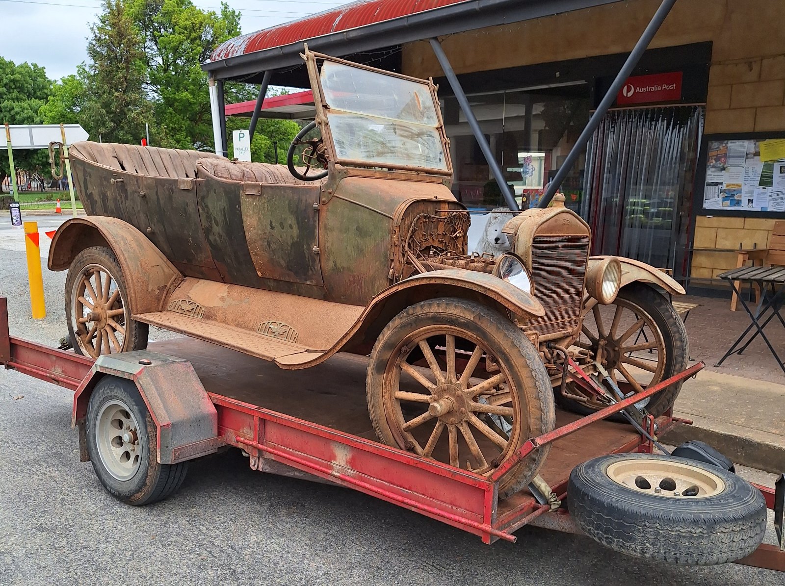 I hauled my '24 Coupe home on a 7x12' single axle landscape trailer and it handled the car fine. All loose stuff went in the tow vehicle.