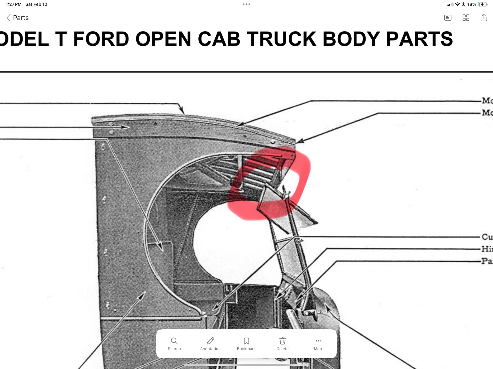 Great Info!! Any chance that you could post the drawing? Is the attachment method shown ie type of fastners? My roof frame has been replaced over the years so there is no evidence left on my truck.Humblej wrote: ↑Sat Feb 10, 2024 3:26 pmI have the Ford drawing, it is called Visor Assembly. The finished length is 36 7/8 x 3 1/4 inches. It is made of top material that is folded over a burlap core with binding on the ends. It is attaced to the front roof header on the inside and overlaps the front (outside) of the windshield frame.
