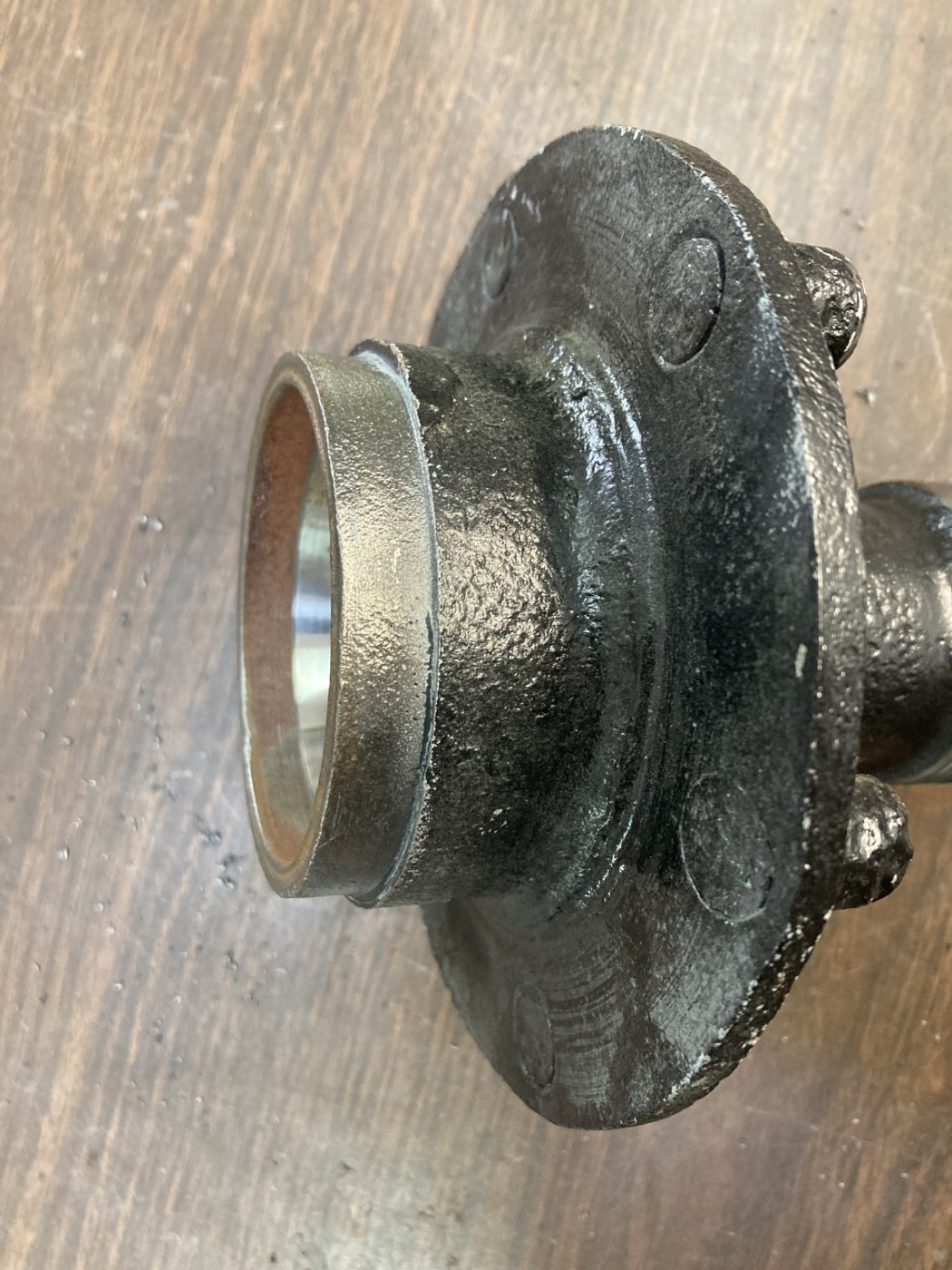 Buffalo hubs (not all) have three tabs that protrude out from the inner edge of the hub to mount the road wheel using three machine screws. Seems Dayton hubs may not have this feature, but you could make up three tabs and tig braze the tabs on your hub- In the picture below you can see one of the mounting tabs behind the road gear. Another method- Stewart made a road gear with about a 3" diameter center to mount on year? a Ford hub that had a machined feature on the inner edge to mount a road gear- locate one of these and machine the inner edge of the Dayton hub to clean up and then make a spacer to mount the road gear that way. Sorry, this picture is not the best, but you can see the mounting tab, and this road gear is the one with the small center hole to locate it on the hub.