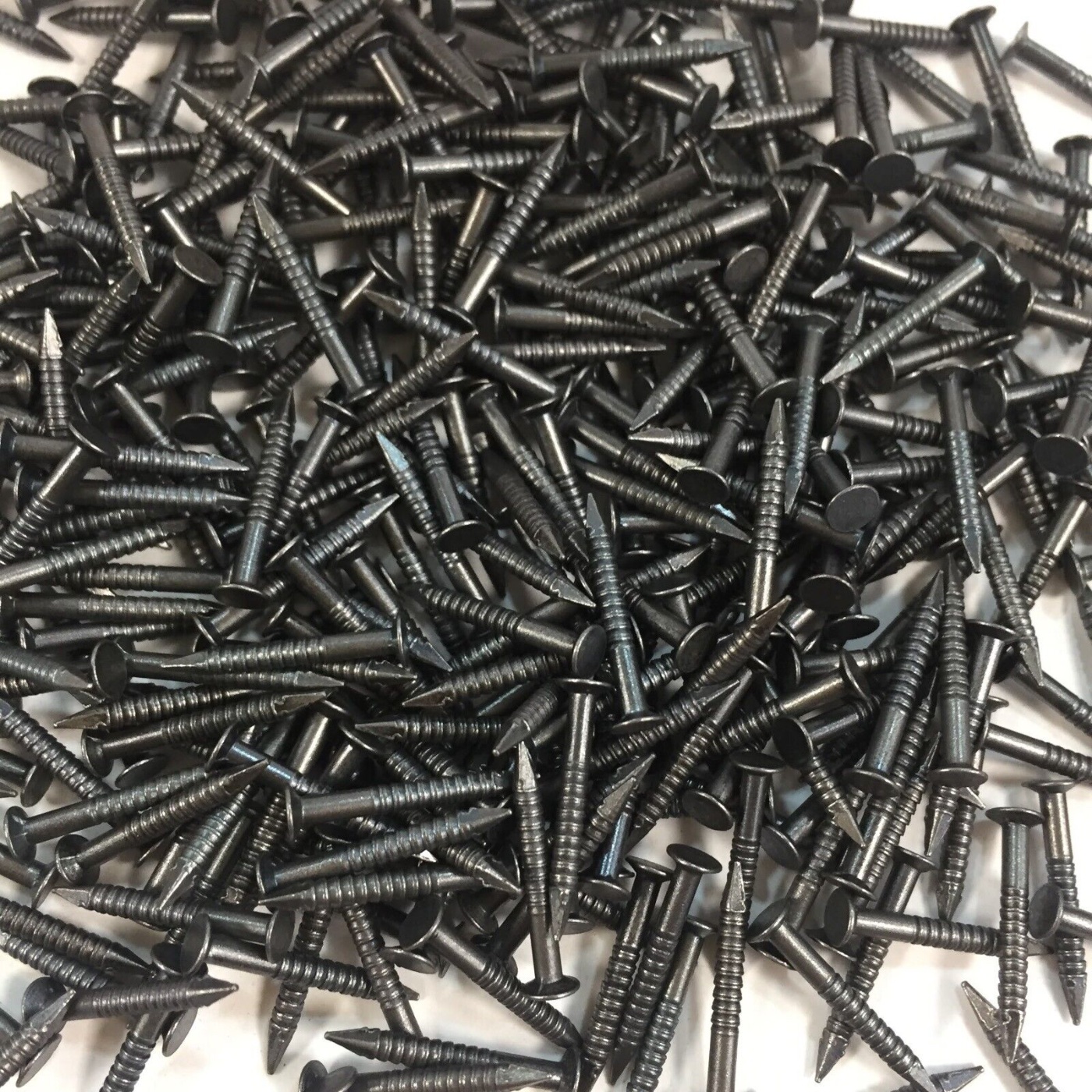I've been looking for some fasteners, I've looked at Restoration Hardware, and local hardware places. I've looked at screw nails, tacks, and ring shanked nails. The major issue is finding a short enough nail so it doesn't go all the way through the 3/4". I found some shoemaking nails that are 1/2" long with a 3/16" flat head. They are steel and ring shanked. Would these suffice?
