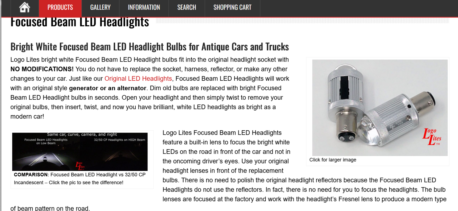 The filament bulbs light source is adjustable to be at the focal point of the reflector for optimum light distribution. This is necessary for any type of bulb dependent on using the reflector. Its easy to see that the Focused LED lens is well beyond that and the reflector is just capturing light emitted from lens glass. The picture below shows the difference in how the headlight reflector illuminates the Headlight lens making the Filament bulb look brighter. So these would be better for those wanting daytime running lights vs night driving. --