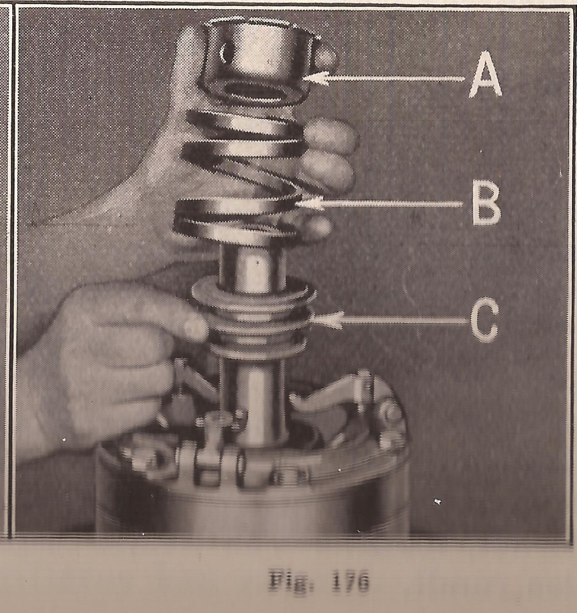 when mounting the hogshead, one of the challenges is to get the bronze fork (clutch release bearing) into the right groove in the clutch release device (C on below drawing). Now there are two grooves and the bronze fork can easily go in both, but which one is the right?