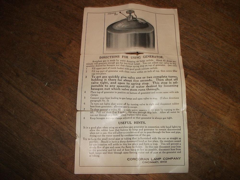What distinguishes a 1913/14 Corcoran carbide generator from the others. Otherwise, how do I know if I am looking a Corcoran generator or some other brand of generator? Pictures would be helpful.