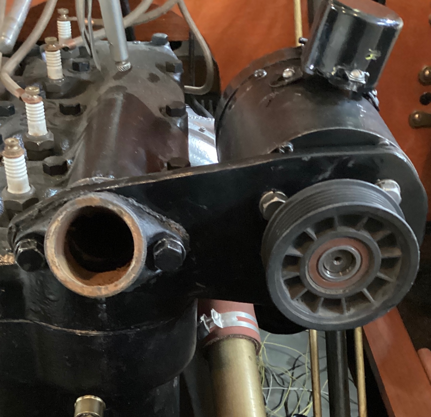 Installed a somewhat period correct model T generator on my 12. Made the bracket and a friend machined an extension to the armature so the fan belt will line up. First bracket I made was too high, thinking if I wanted to have a water pump but made the second one to place the generator lower next to the motor and not sticking up. A modern alternator just did not look good next to all the original 12 motor and everything and that is why I decided on a generator. I will go just so far to be original but in this case there is nothing closer to original 1912 factory equipment. Installing brake lights and blinkers at the same time, a lot of wires.
