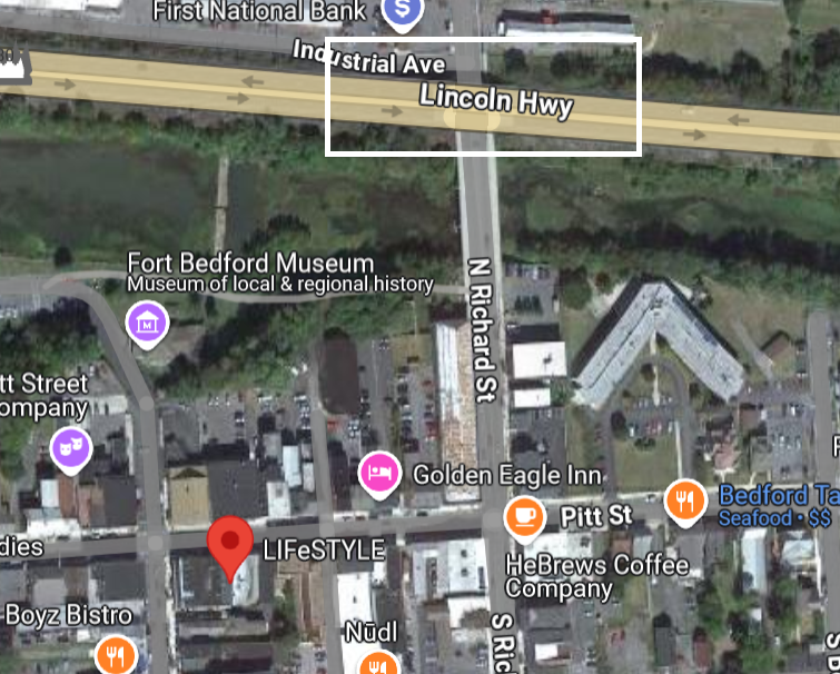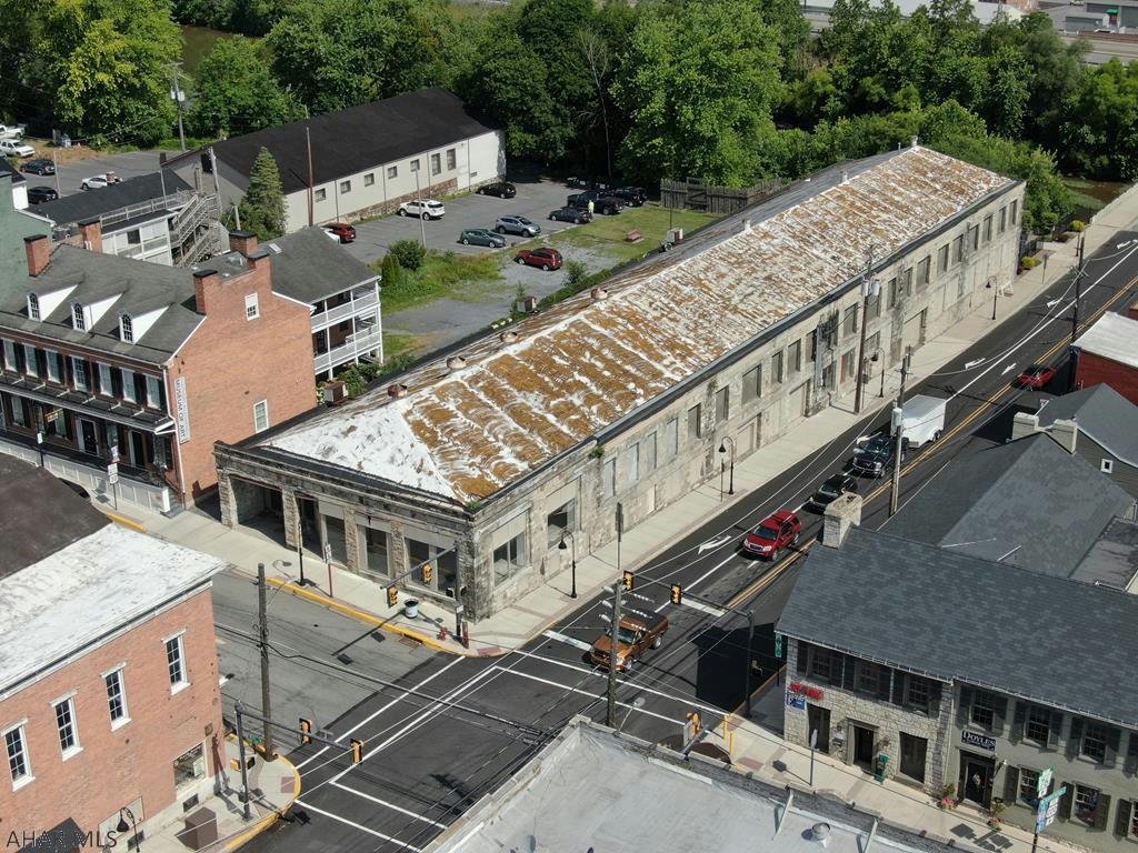 Commanding, one of a kind, stone building located at the busiest corner in the Bedford Borough. Originally built as a Ford Dealership in the early 1920's, this property presents endless possibilities and opportunities. Light manufacturing, warehousing, retail, office space, housing, parking garage, mixed use, etc. Building contains approximately 34,500 square feet, is all masonry and steel construction and free span on the main level. Lot size is .41 acre with city water, sewer and natural gas. Situated in the heart of storied downtown Bedford, next to the Southern Alleghenies Museum of Art, the original Fort Bedford and just steps to the Raystown Branch of the Juniata River. This is a rare opportunity to own one of Bedford's most prominent buildings!!!