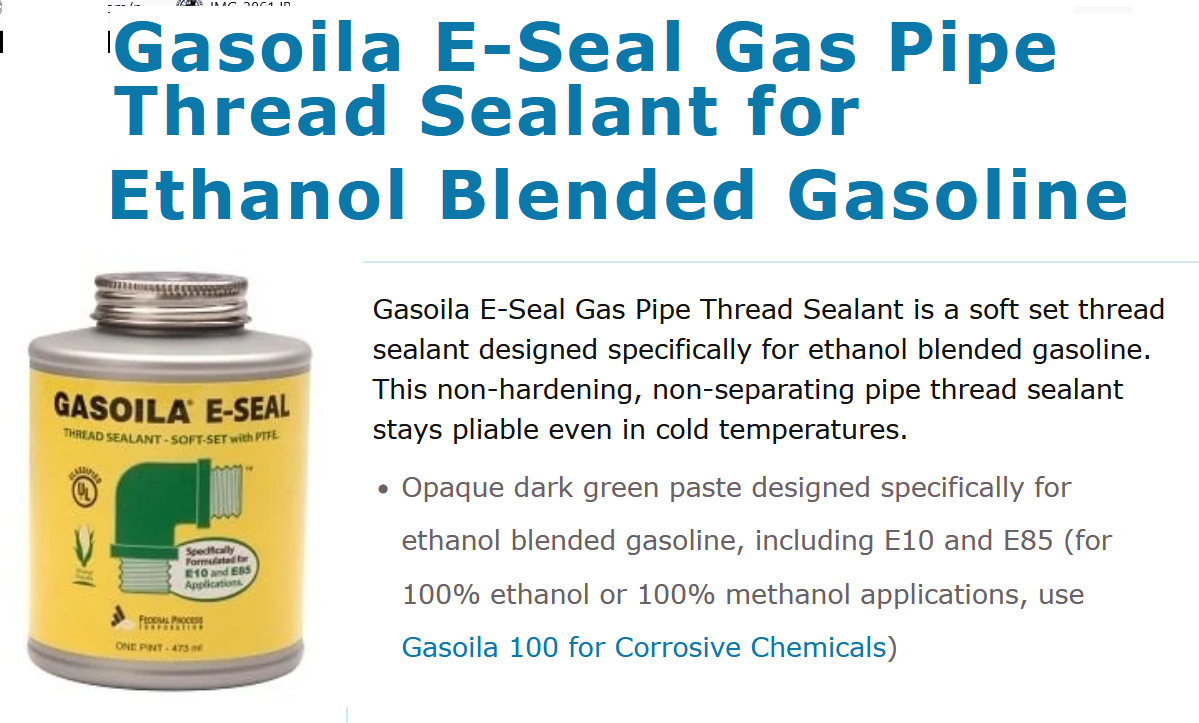 Mark. I read all the information the Permatex link and cannot see where it is specifically for gasoline. Are you sure it will stand up to gasoline? Knowing me, I probably missed something LOL. Respectfully submitted, Jim Patrick