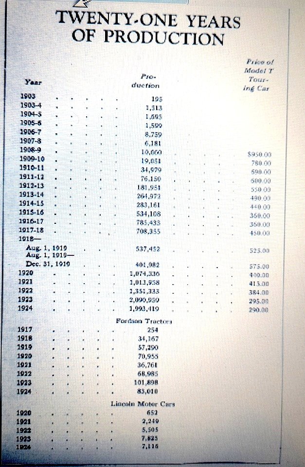 The difference in production numbers and prices between 1908-1909 and 1923-1924 is pretty striking.