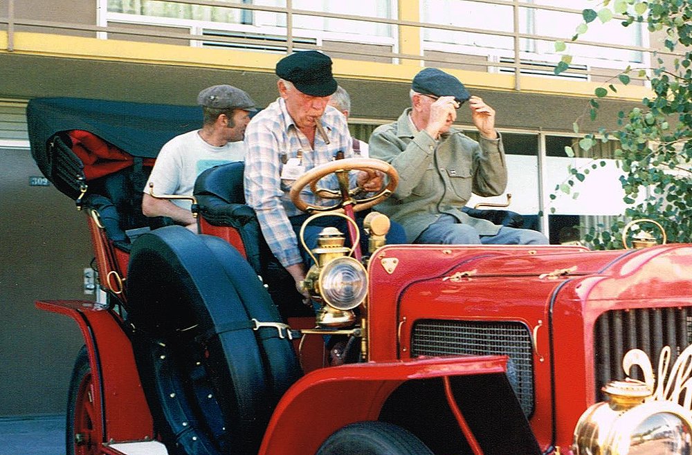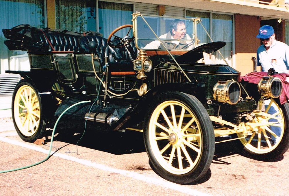 Joy took this of me in front of a 30hp Stanley. Among the kindnesses shown to me was the driver of this car asked me if I wanted a ride in it. "Sure"! We drove a few blocks and into a parking lot. He asked if I had ever driven a Stanley. I couldn't believe my ears. He gave me some instruction and let me drive it back to the Motel.