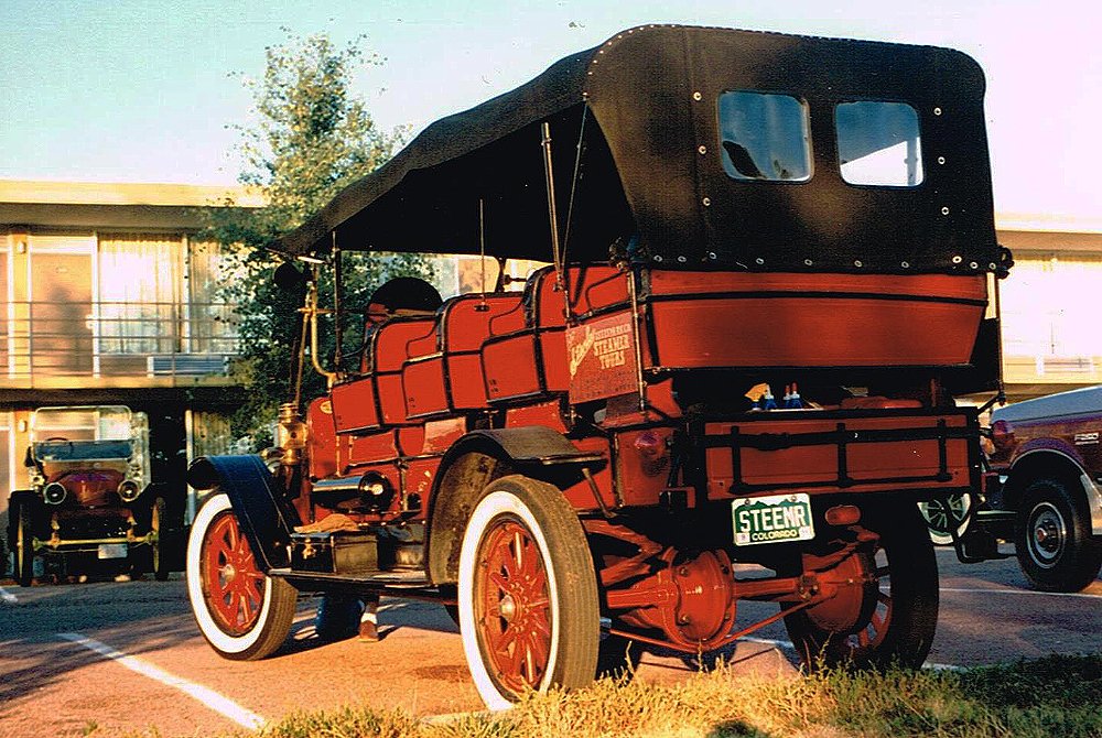 Joy took this of me in front of a 30hp Stanley. Among the kindnesses shown to me was the driver of this car asked me if I wanted a ride in it. "Sure"! We drove a few blocks and into a parking lot. He asked if I had ever driven a Stanley. I couldn't believe my ears. He gave me some instruction and let me drive it back to the Motel.