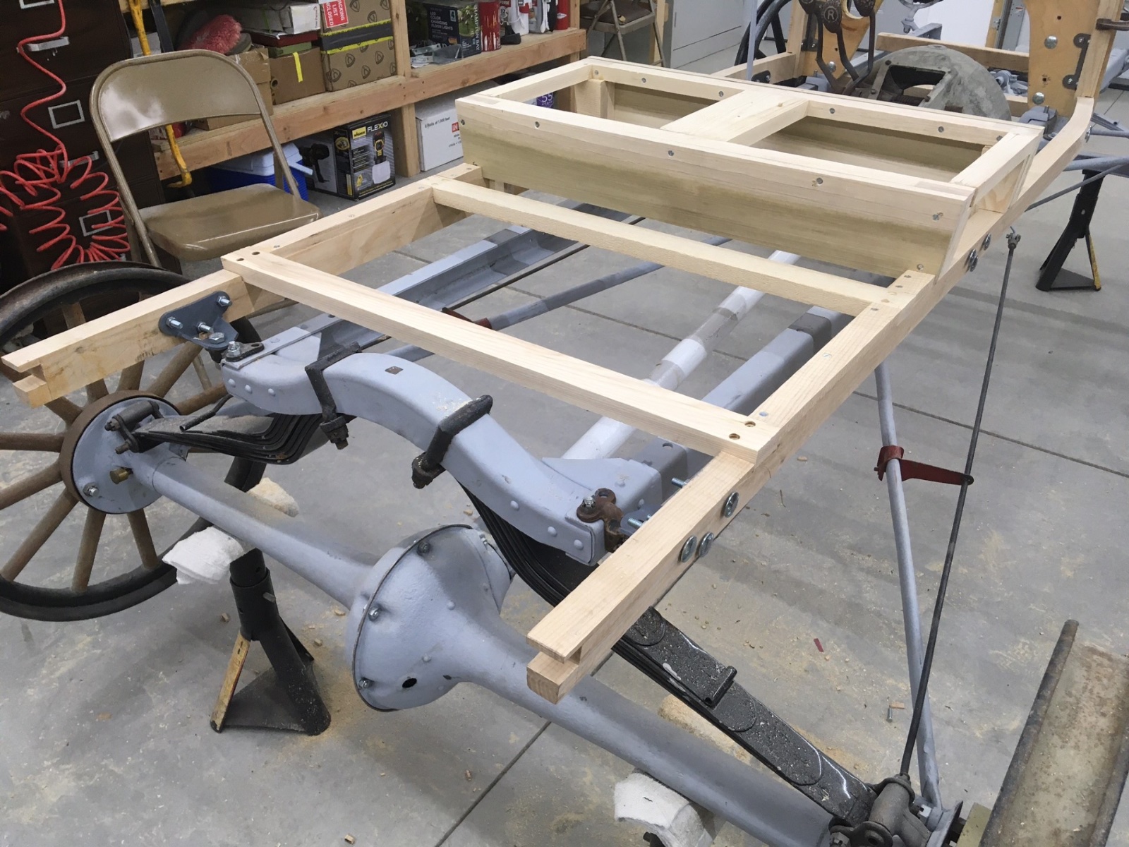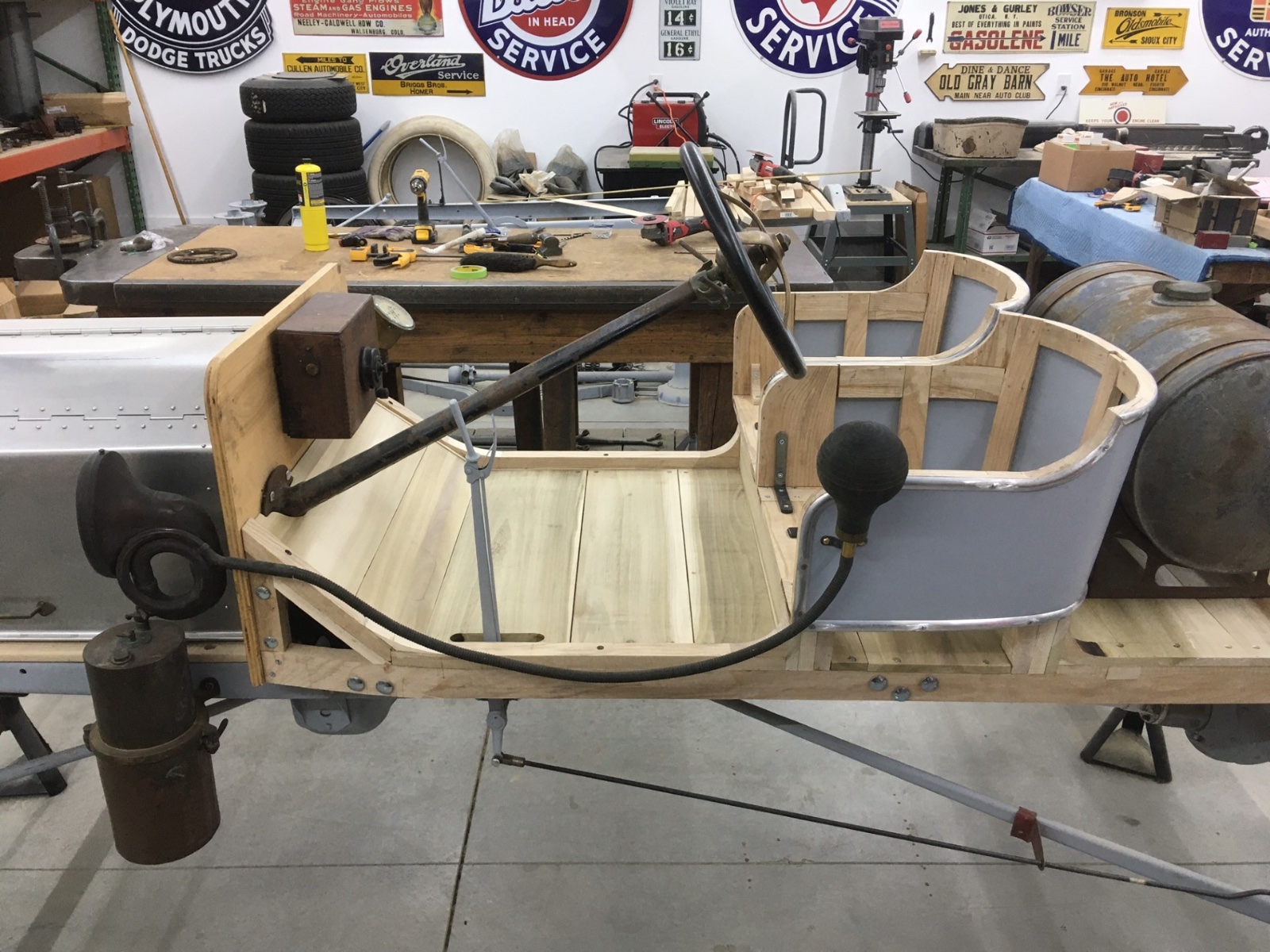 Well, I moved this to Ohio and have started to place some parts on the chassis to get a feel for what to do for a body. I like the basic feel of the spacing, but it needs a body platform of some type. Step in or step over. Flat dash or scuttle cowl. Tool box or ? on the tail end. Suggestions most welcome.