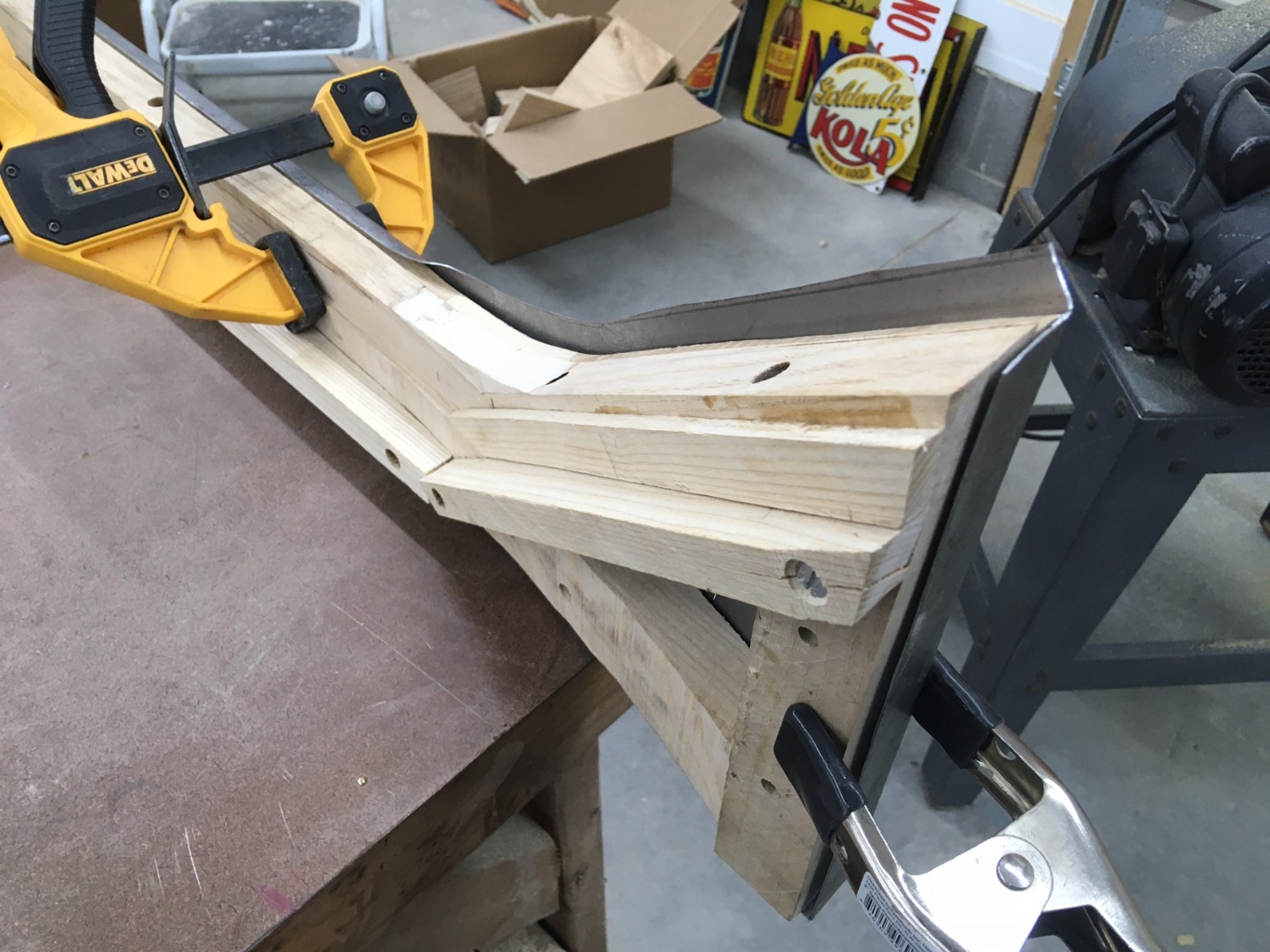 Ok, well I got the corner plates finally. Clamp them in place and knock the material up.