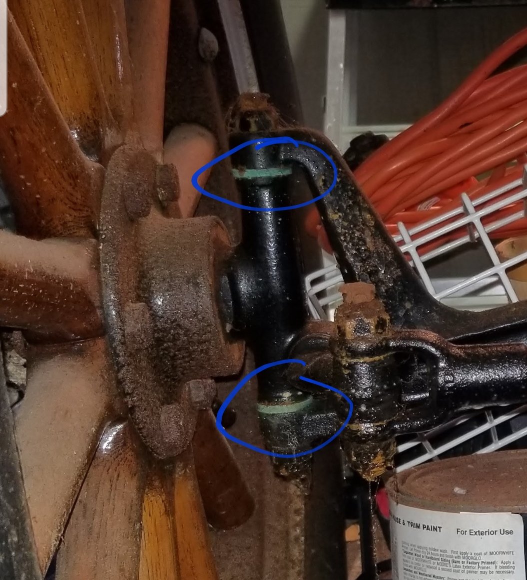 Bingo! That's her. She's free with the wheels up and no binding. The acid fumes mainly surface rusted some parts and took off the paint. Base metal is very solid. The green patina bushings do need to be replaced. I noticed one side had very little play whereas the other has about .040".