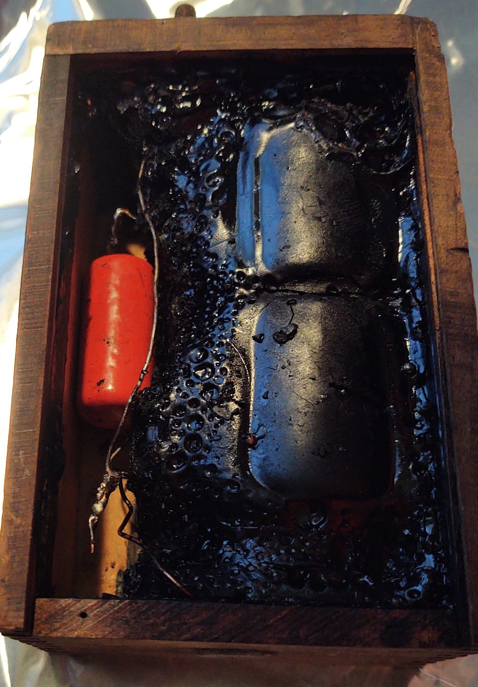 Thanks Charlie. I did save what I took out of one I took apart. The new cap is lather in diameter and I have to remove the glass plate. I considered using wood fill pieces of plexiglass and reuse what I can salvage. If someone is willing to part with a little chunk of tar it would make it easier. Thanks for taking the time to explain your process. The only reason I’m doing a few coils is to learn more. I only have the one car.Charlie B in N.J. wrote: ↑Sun Apr 07, 2024 5:29 pmIf you haven’t started yet and just need it for a capacitor replacement here’s what I’ve done about a dozen times: first carefully pry off the narrow side of the case opposite the brass buttons. A putty knife between the tar and the wood does wonders. Once off tar picking is easy. I leave the glass insulator in place as the caps I’ve used left enough room. Reclaim every piece of tar you chip out. Work on a large cardboard or plastic but save it all. Solder in the cap and use wood spacers to take up most of the open space. The collected tar goes into a small tin can with a spout bent into the top. A vice grip makes a good handle. OUTSIDE use a propane torch to melt the tar. It will go liquid quickly and smoke like hell. Of course the coils must be lined up and ready to receive the tar. I’ve never needed to buy any tar and don’t do enough coils to need a chunk of it hanging around.