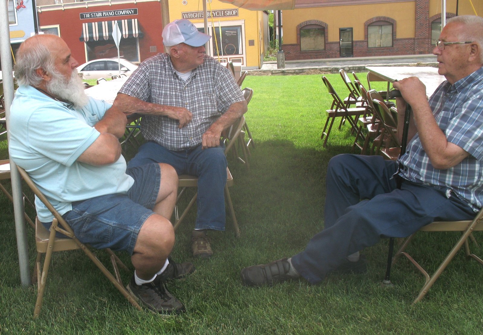 Gator Gould (left) visits with Russ Potter (right).