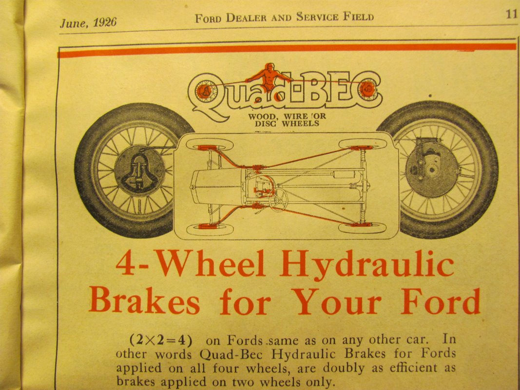 Has anyone seen or owned any pieces of the Quad-Bec hydraulic brakes as shown in 1926 ads?